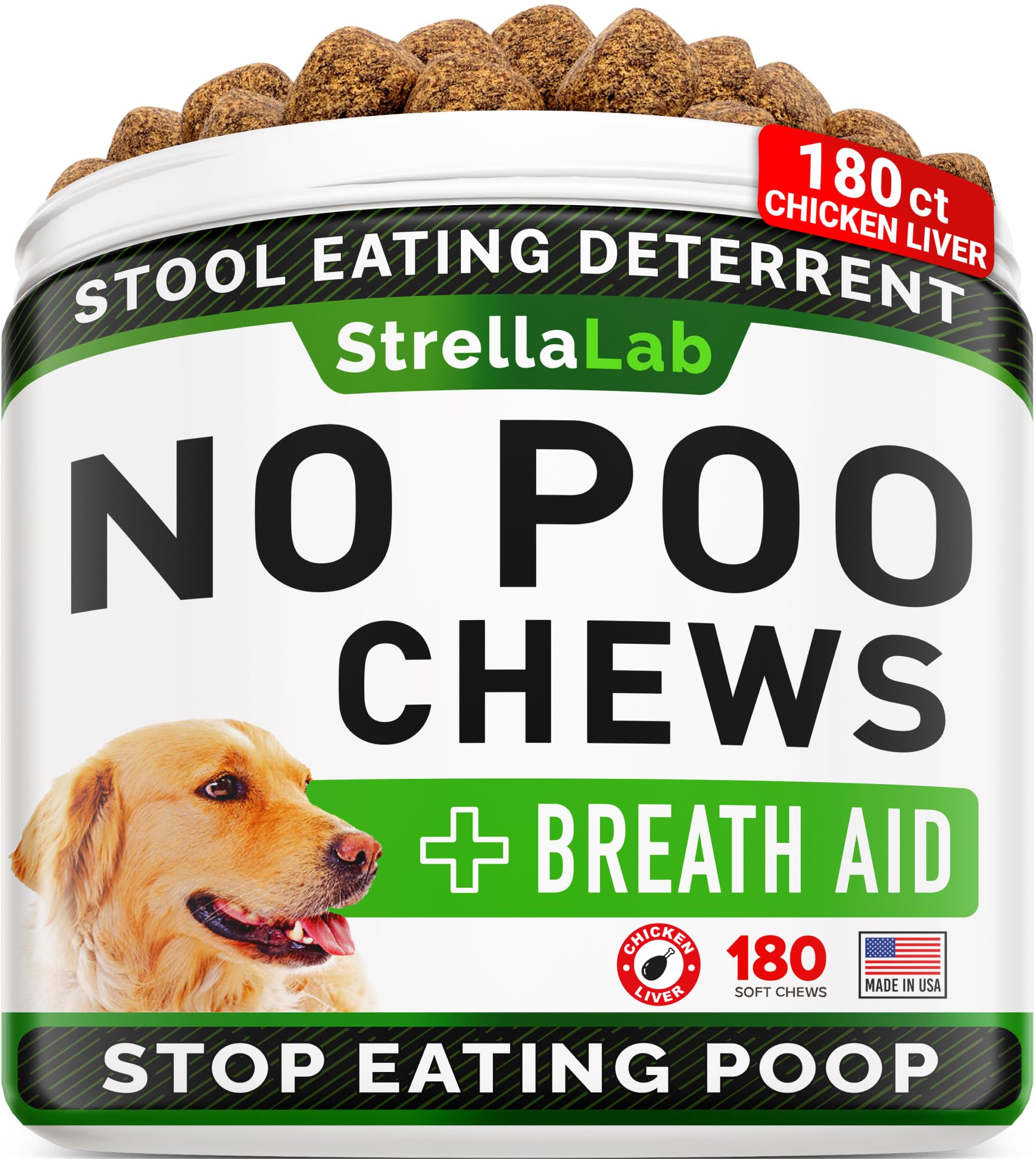 STRELLALAB No Poo Treats for Dogs - Coprophagia Stool Eating Deterrent - No Poop Eating for Dogs - Digestive Enzymes - Stop Eating Poop - Liver Flavor 180 Ct