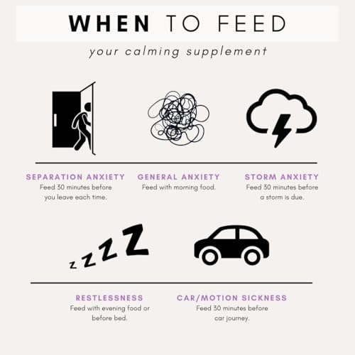 Calms Fear & Anxiety: Specially formulated to ease common sources of anxiety like fear, separation, and age-related stress. This calming powder blend helps your dog feel at ease in situations that may usually trigger discomfort.