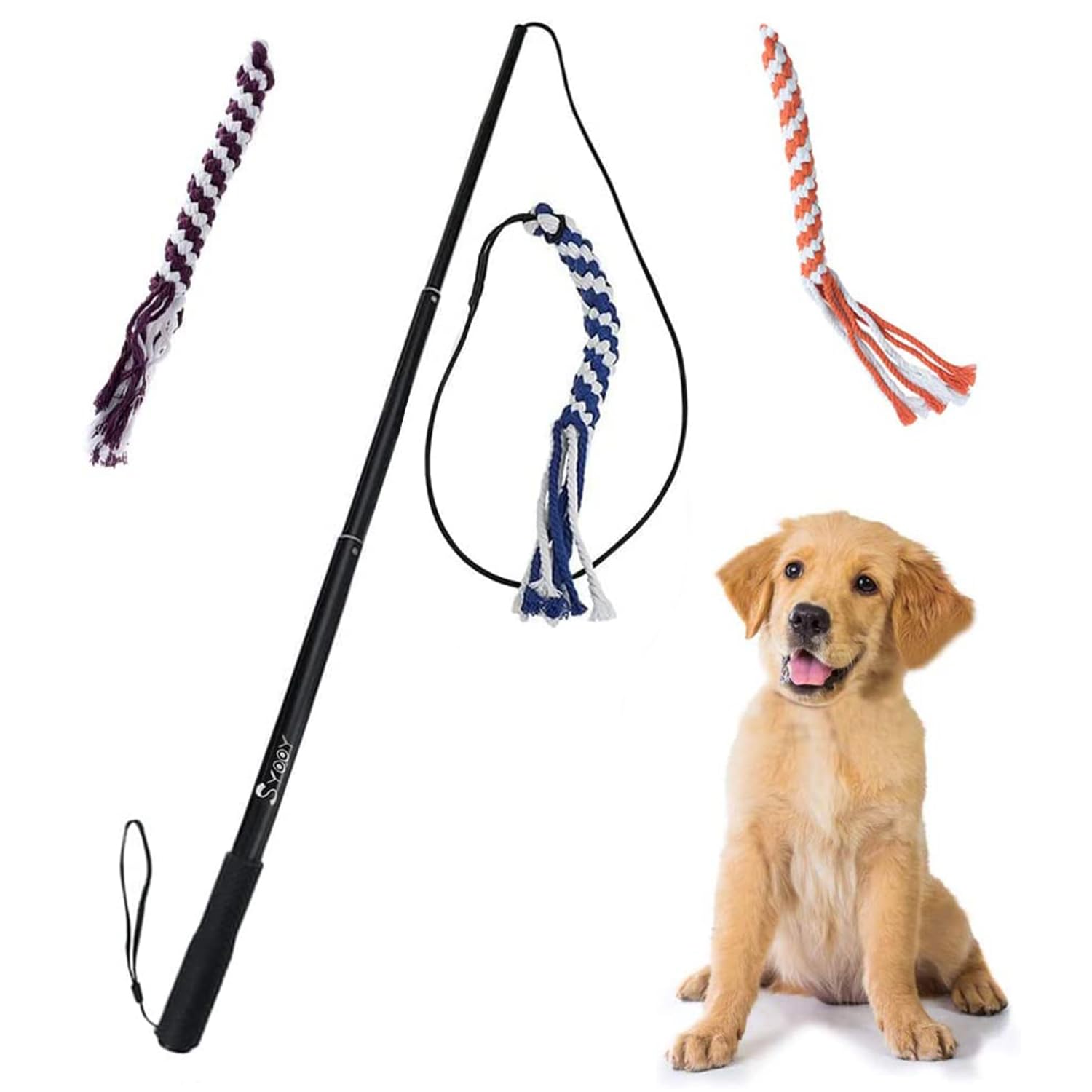 - Best for Dog: 1 teaser wand + 3 tough cotton rope tail. This is a perfect set for your lovely. You can change the different color of the rope tail to attract dogs' attention. Suitable for small medium large breed dogs aggressive chewers, such as german shepard, golden retriever, schnauzer, great dane, etc