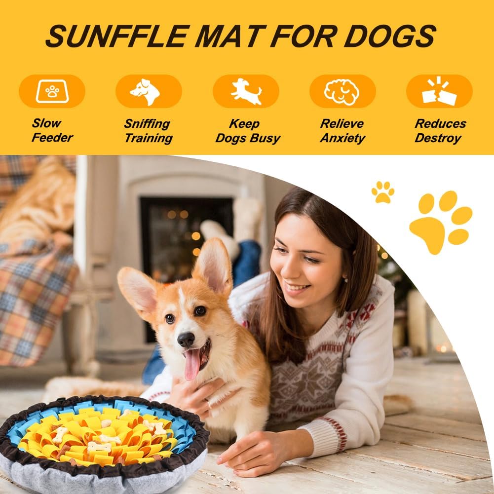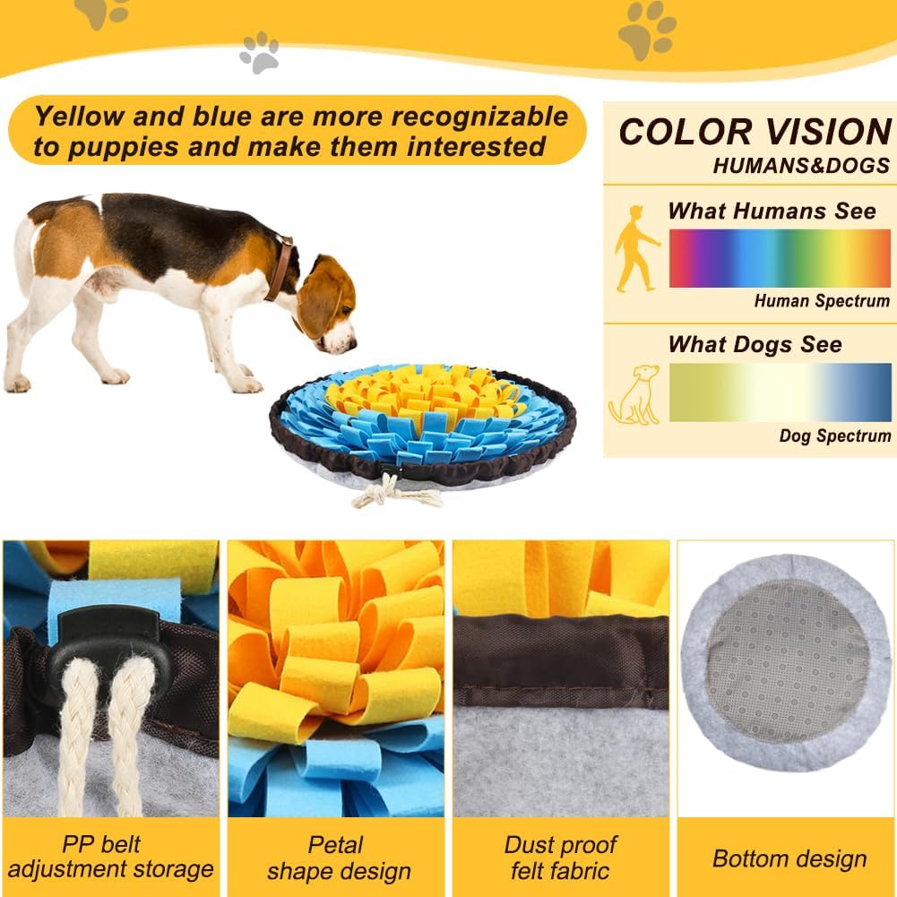 • Cognitive Stimulation & Anxiety Reduction - The dog sniff mat offers dogs a stimulating experience, prompting them to use their sense of smell and touch to find hidden food or treats in the mat. This enhances cognitive abilities, problem-solving skills, easing anxiety and nervous emotions and helps prevent destructive behaviors.Pets that love to chew should be supervised during use.
