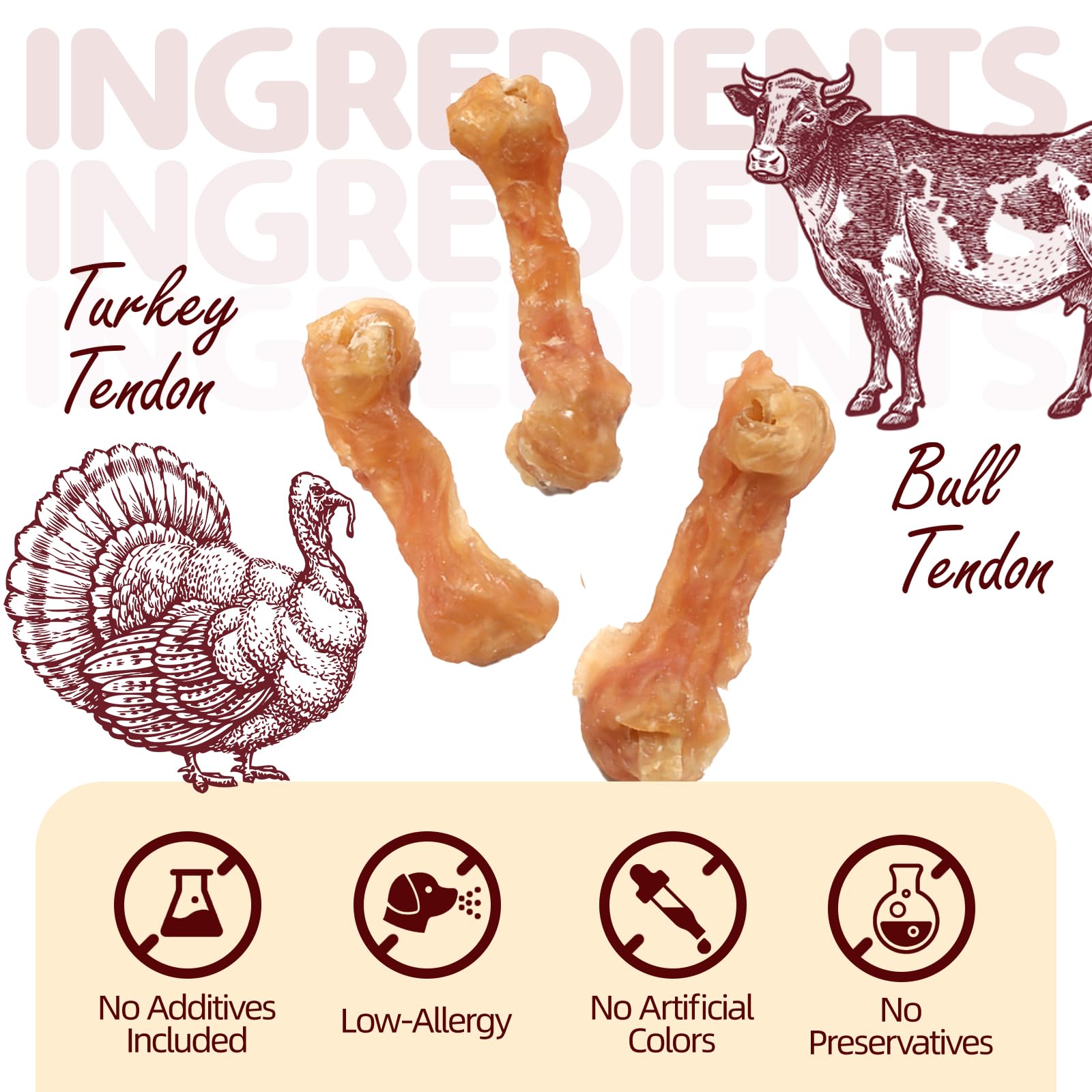 Premium & Low-Allergy Pet Treats: Made from natural, human-grade turkey tendons and beef tendon with no additives, fillers, or artificial preservatives, these wholesome dog snacks are perfect for sensitive pups. They provide a safe and satisfying chew