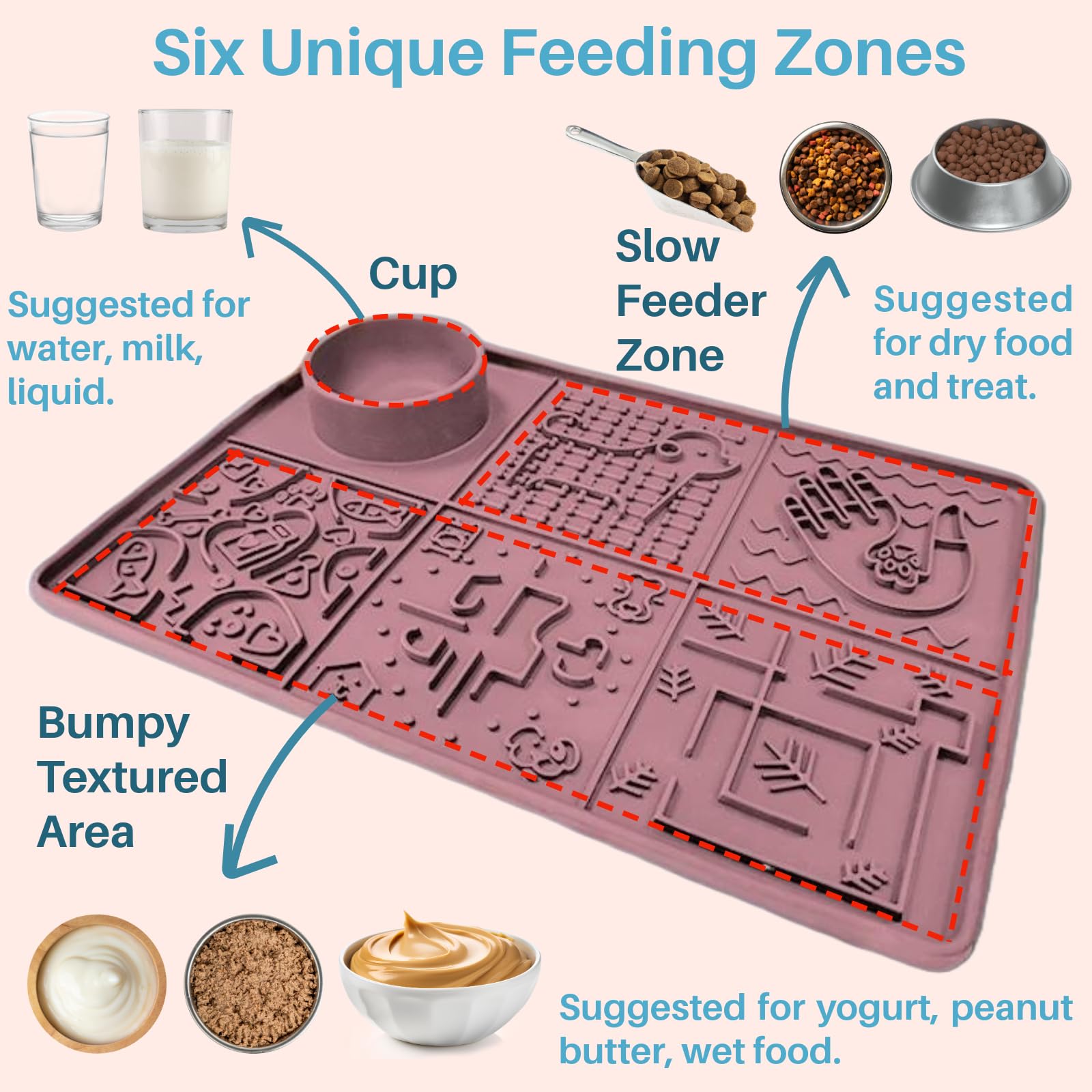 • 【Slow Feeding to Improve Digestion】: Designed with six distinct textured surfaces, this mat is perfect for spreading treats like peanut butter, yogurt, and cream cheese. It functions as a slow feeder, helping to extend mealtime and promote better digestion. Ideal for cats, puppies, and dogs of all sizes.