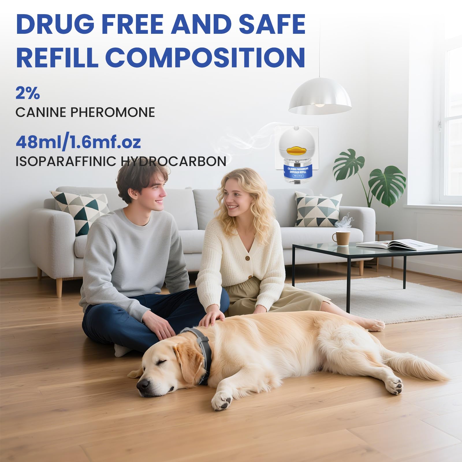 Lasting Effects - Each dog calming pheromone diffuser can provide a continuous dog pheromone release for up to 30 days, providing a lasting solution to soothe dog's emotions and live in a friendly manner with humans. An effective dog anxiety relief agent that helps relieve stress caused by loud bangs, fireworks or thunderstorms