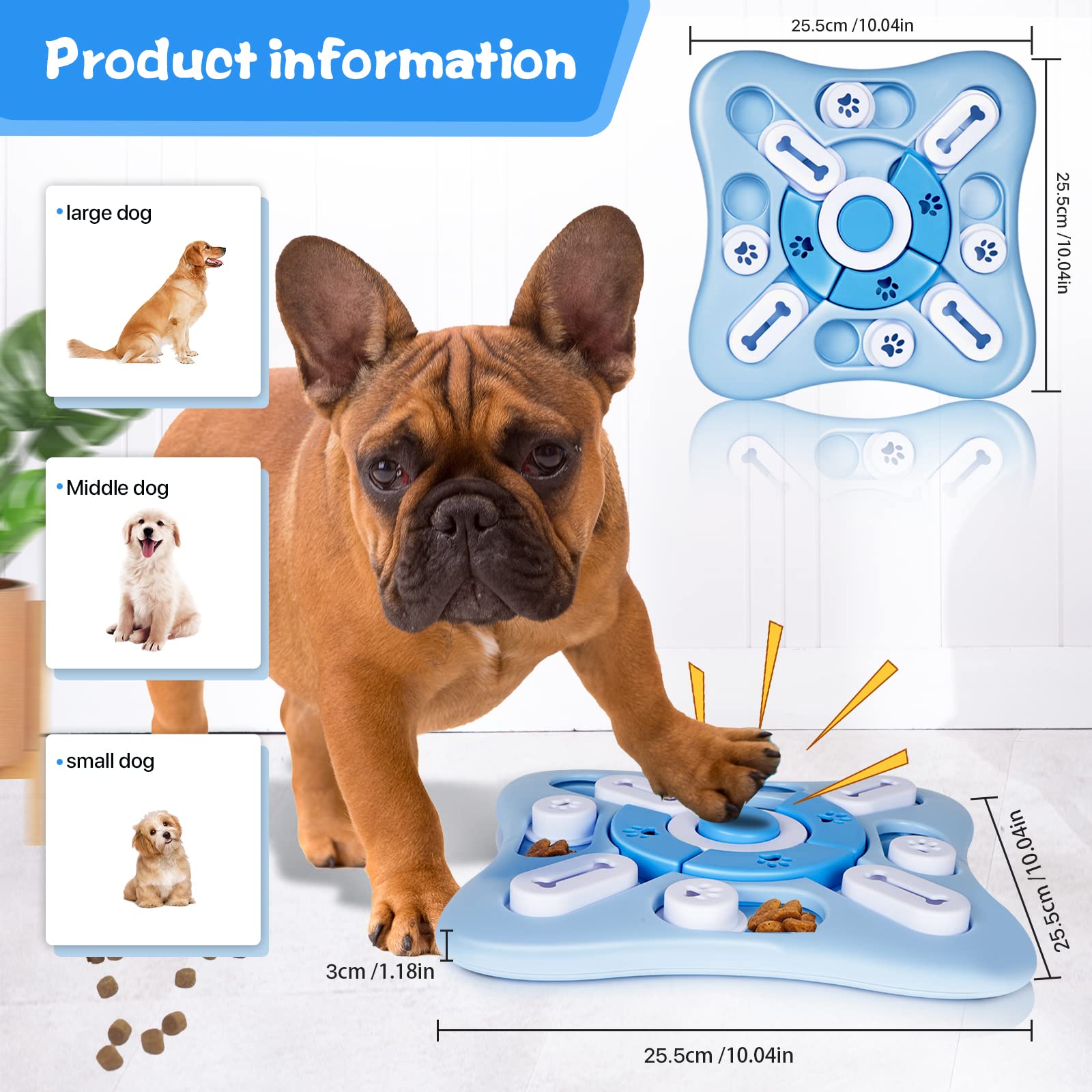 INTERACTIVE STIMULATING TOYS: Most dogs and cats love the puzzle game of Spin & Slide and Seek & Hide with their smell sense and paw skills to find food. Combining the circular orbit sliding game and linear orbit sliding game, they must move the slider correctly to get the food reward hidden in the maze. Therefore, improve the IQ of dogs, trains the smell of pets, let dogs enjoy the fun of feeding, become more active, and avoid pet depression