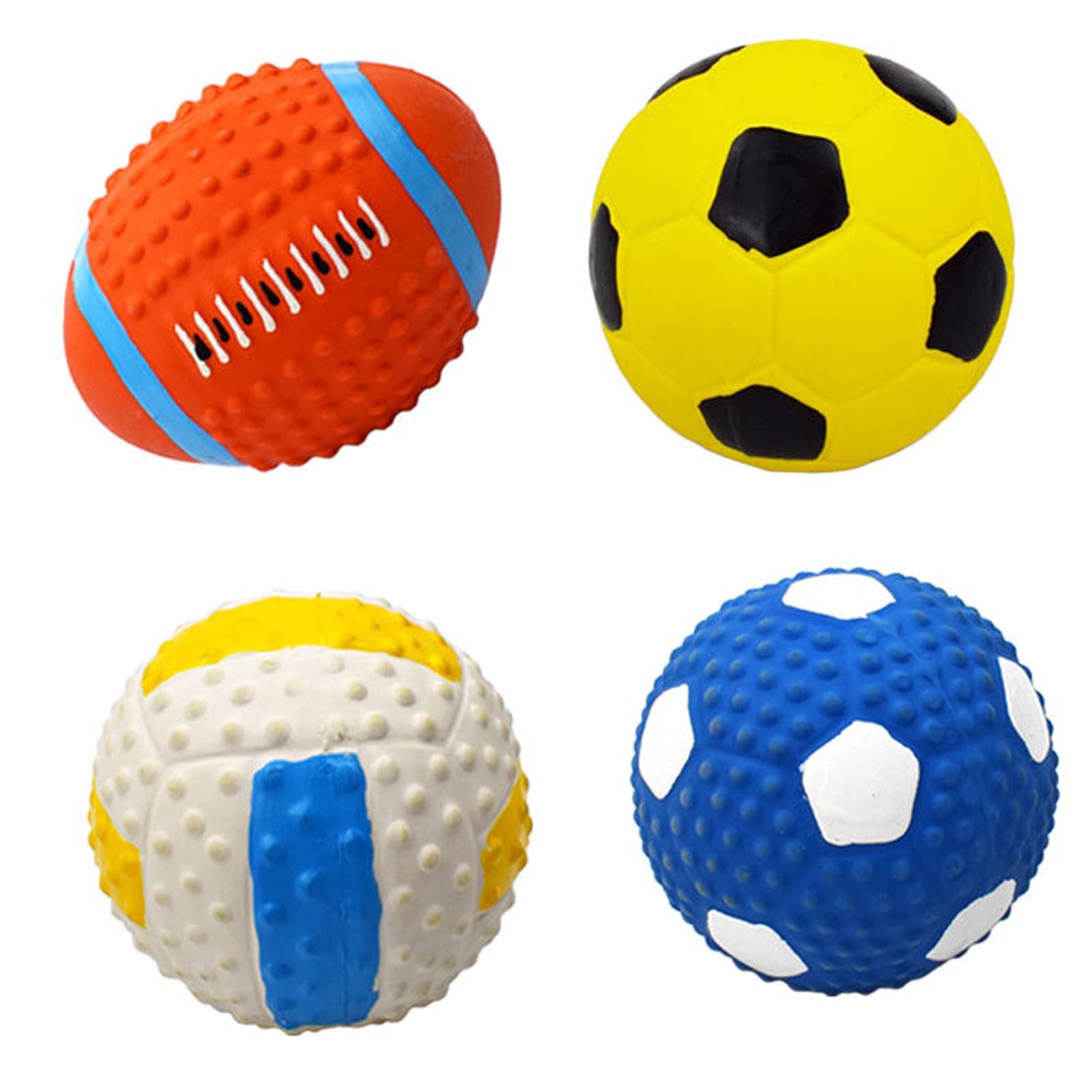 - PERFECT FOR PLAYING FETCH: This popular, squeaky dog toy is fun to play fetch with because of the ball shape (Yellow Soccer Ball, Volleyball, American Football, Blue Soccer Ball), it bounces unpredictably and surprises your dogs. They will absolutely LOVE playing with and chasing this soft, squeaky and bouncy ball, which will entertain your pup for hours.
