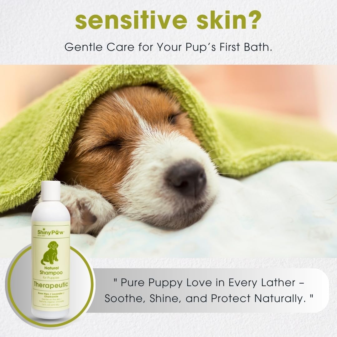 Tearless Puppy Shampoo and Conditioner by Shiny Paw 16 oz | Natural Chamomile, Lavender & Rose Hip Pet Shampoo for Puppies | Hypoallergenic for Sensitive Skin