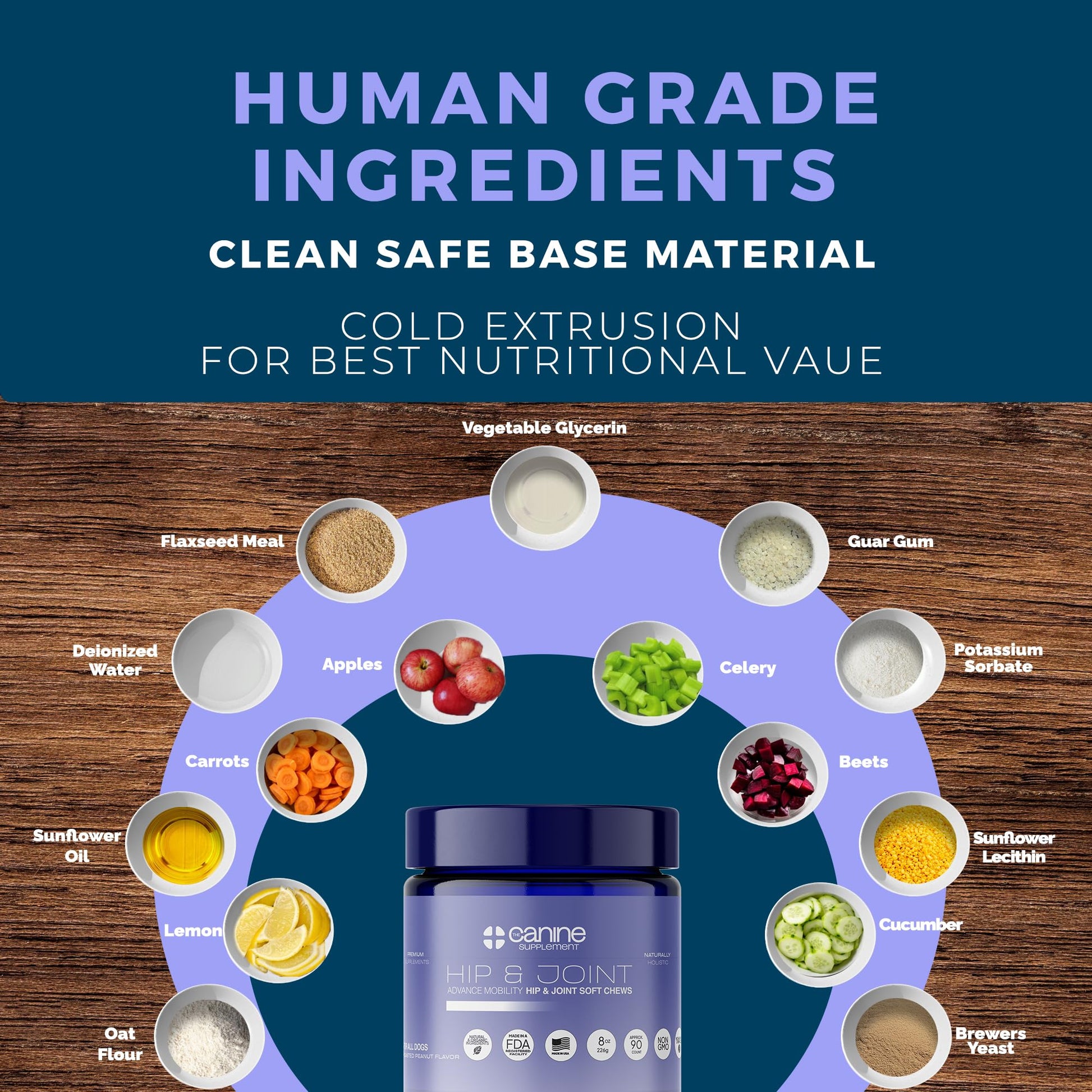 - SUITABLE FOR ALL DOGS & DAILY USE: Safe and gentle for puppies, adults, and senior dogs. These soft chews are pet nutritionist crafted, naturally holistic, and made to support hip health, stiffness, and overall joint function. Serve daily as a treat or crumble into meals, dogs love the roasted peanut flavor and easy-to-chew texture.
