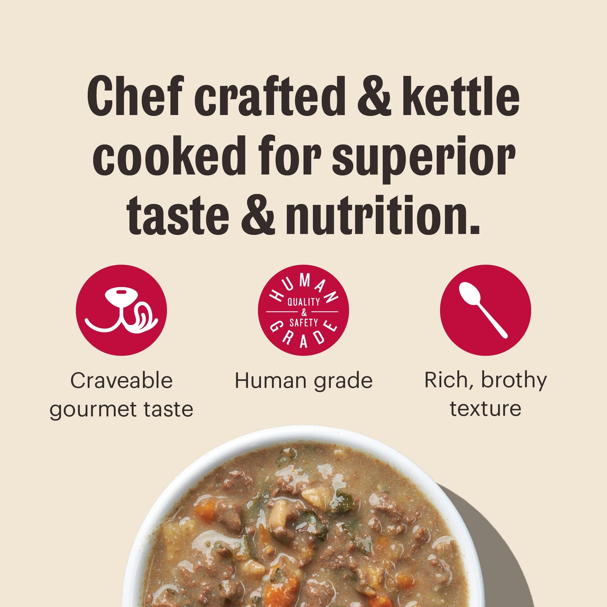 - HEALTHY AND BALANCED NUTRITION: This hearty, kettle-cooked wet dog food features ranch raised beef and farm veggies, providing balanced nutrition for dogs of all life stages, including puppies and adults with specific needs