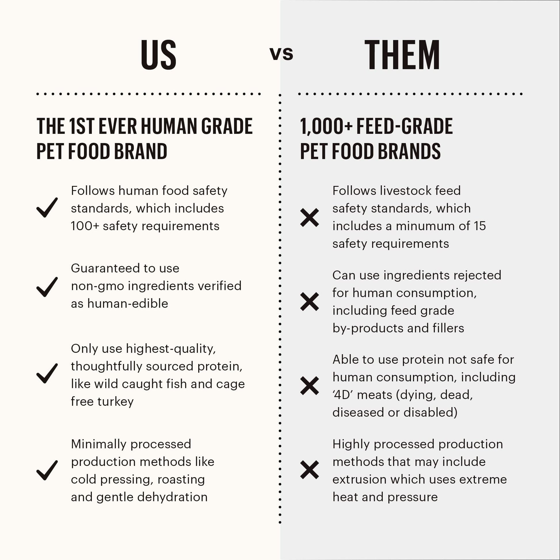 - HUMAN GRADE: Unlike most pet food, this recipe is 100% human grade – made with human grade ingredients & produced in a human food facility. That means higher quality ingredients & more safety standards, just like you'd expect from your own food.