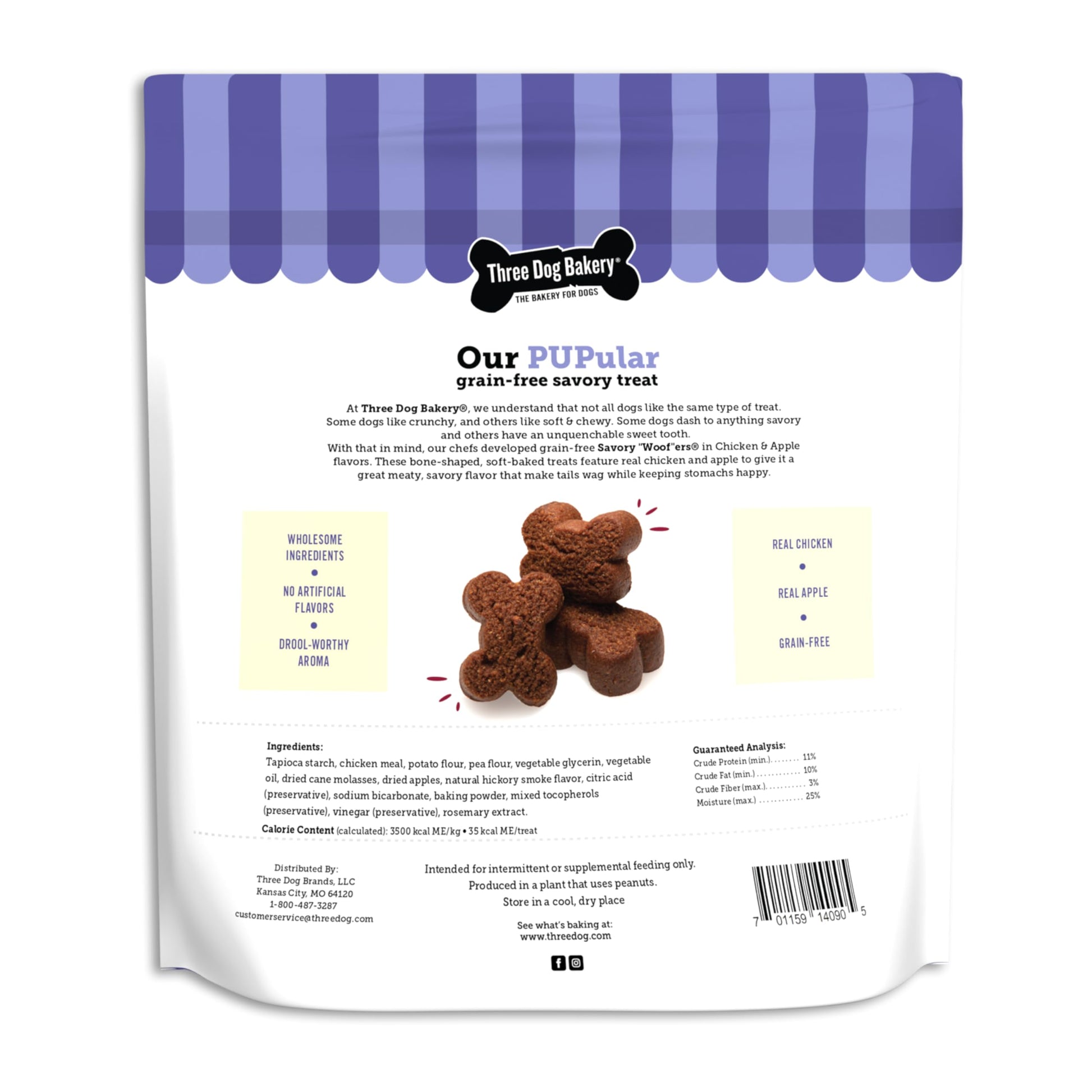 Three Dog Bakery Grain-Free Savory Woof ers in Chicken & Apple - Low Fat Dog Treats, Chicken & Apple Flavored Puppy Training Treats, Cookies for Dog Training Treats