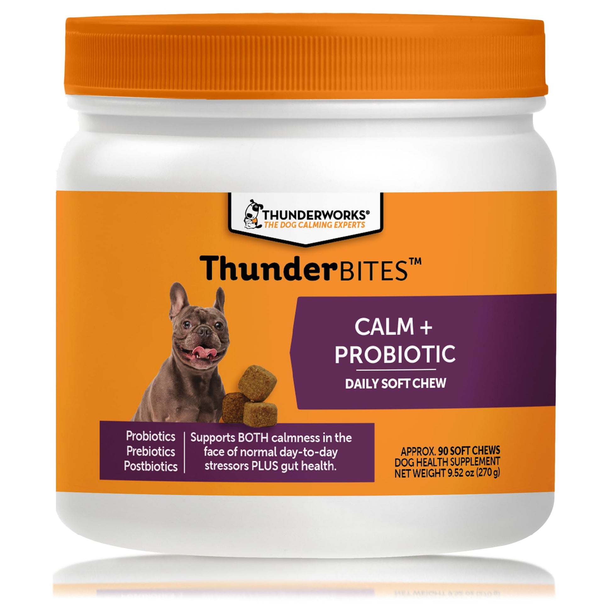 ThunderBites Calm + Probiotics for Dogs Daily Supplement Soft Chews, Supporting Dog Digestive & Gut Health with Probiotics, Prebiotics & Postbiotics + Calming Support for Daily Stressors, 90 Count
