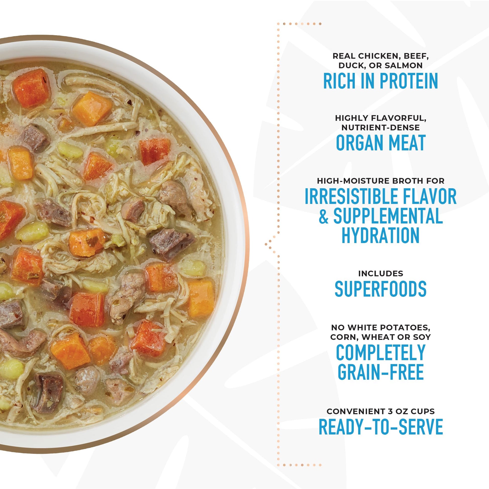 - SOFT TEXTURE, REAL SHREDDED CHICKEN, BEEF & FLAKED SALMON - Protein-rich, wet dog food made with premium sources of protein in every cup.