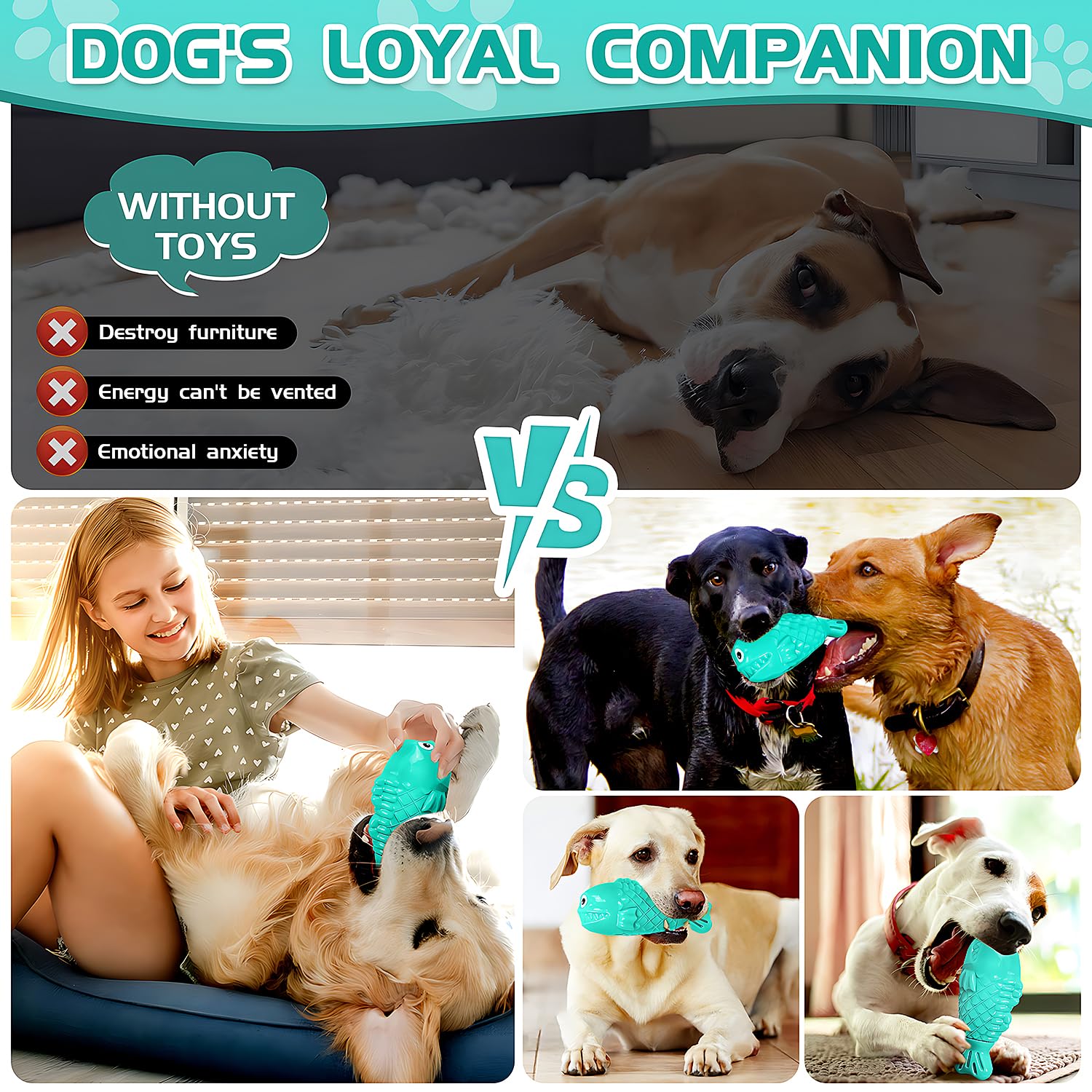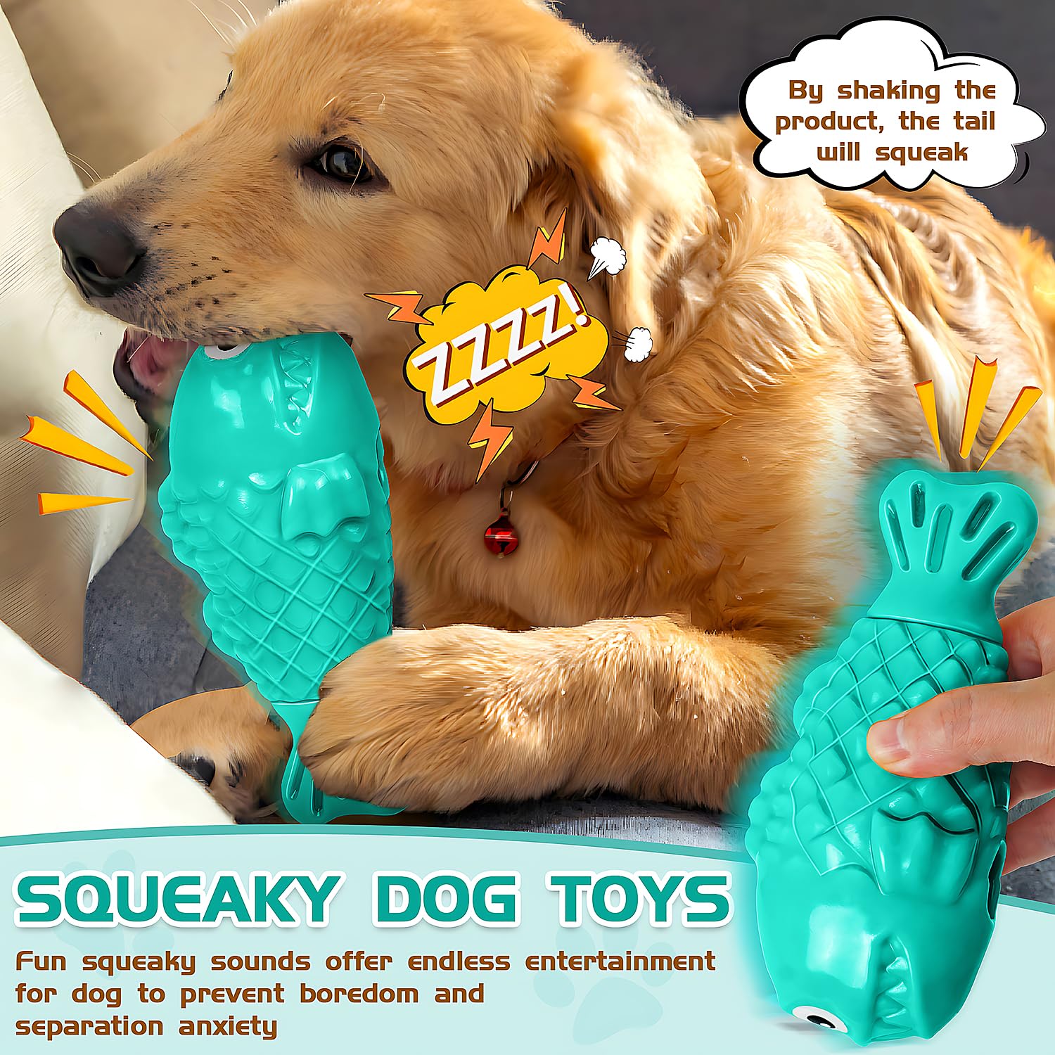 IRRESISTIBLE BACON FLAVOR & SQUEAKY DOG TOYS: Our dog toys feature a unique bacon flavor and a playful fish shape that entices dogs to chew and play with excitement. When the toy is shaken, the built-in sound generator squeaks, adding even more fun and excitement for your furry friend while preventing them from chewing on furniture or slippers. This interactive feature makes it a great dog toy to keep them busy, reduce boredom and develop good chewing habits