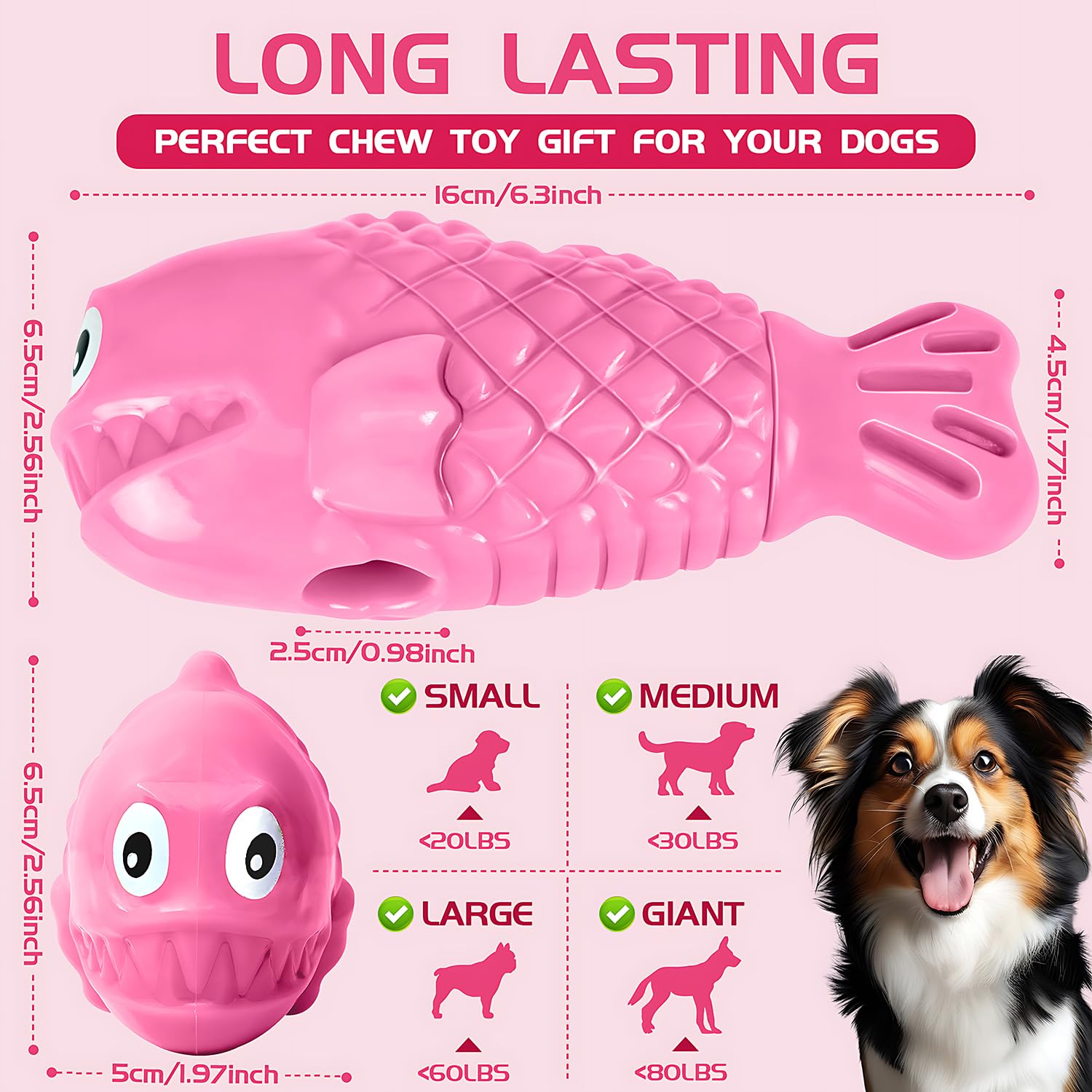 • IRRESISTIBLE BACON FLAVOR & SQUEAKY DOG TOYS: Our dog toys feature a unique bacon flavor and a playful fish shape that entices dogs to chew and play with excitement. When the toy is shaken, the built-in sound generator squeaks, adding even more fun and excitement for your furry friend while preventing them from chewing on furniture or slippers. This interactive feature makes it a great dog toy to keep them busy, reduce boredom and develop good chewing habits