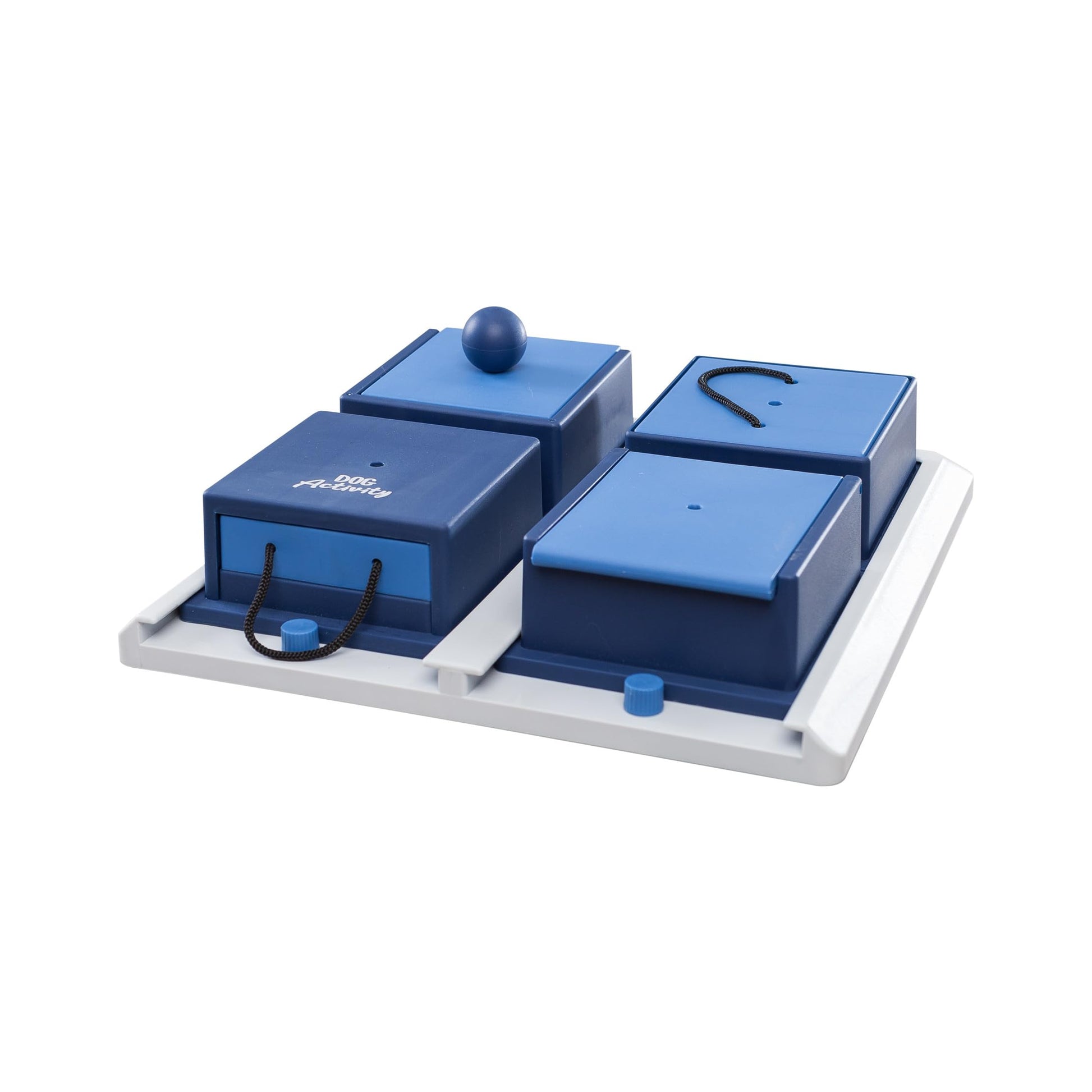 The non-slip rubber feet keep the box in place as your dog pushes, pulls, lifts and explores