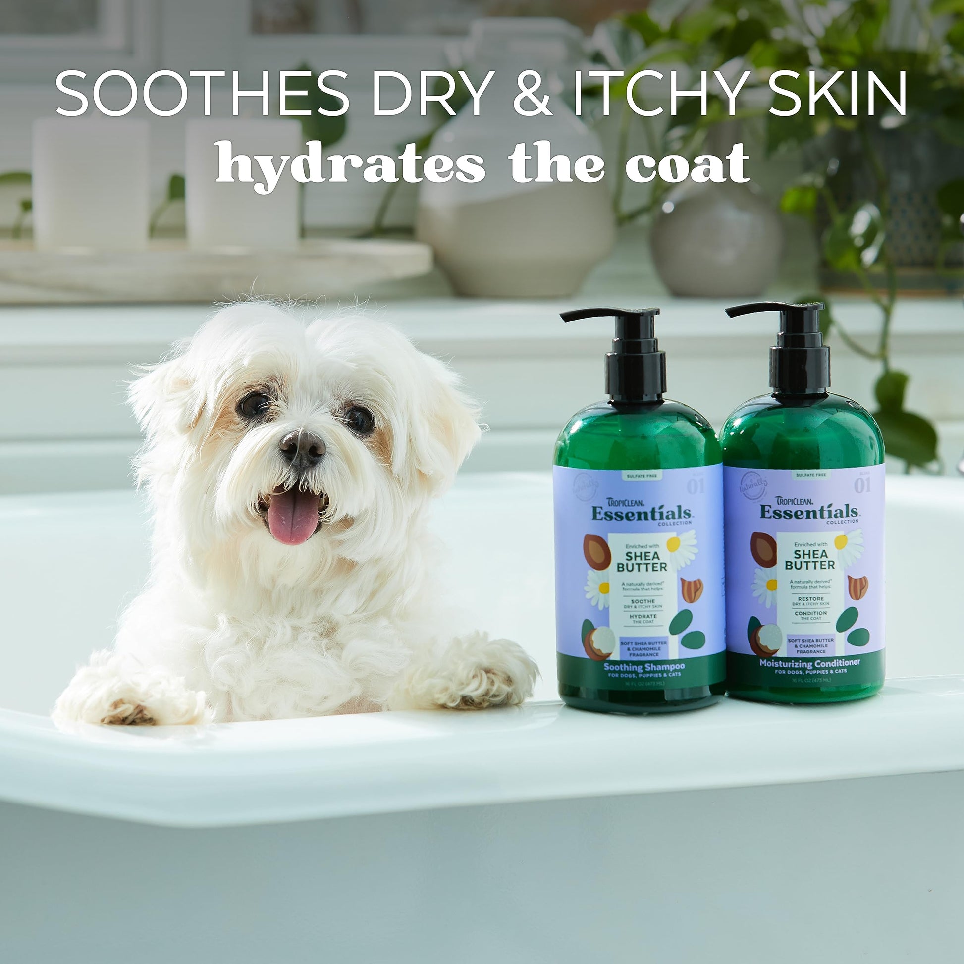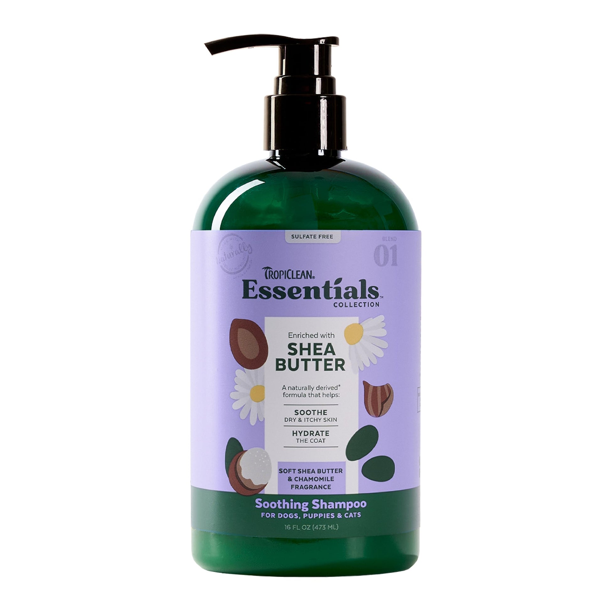 TropiClean Essentials Shea Butter Shampoo for Dogs | Puppies & Cats | Soothe Dry & Itchy Skin | Hydrate The Coat | Derived from Natural Ingredients