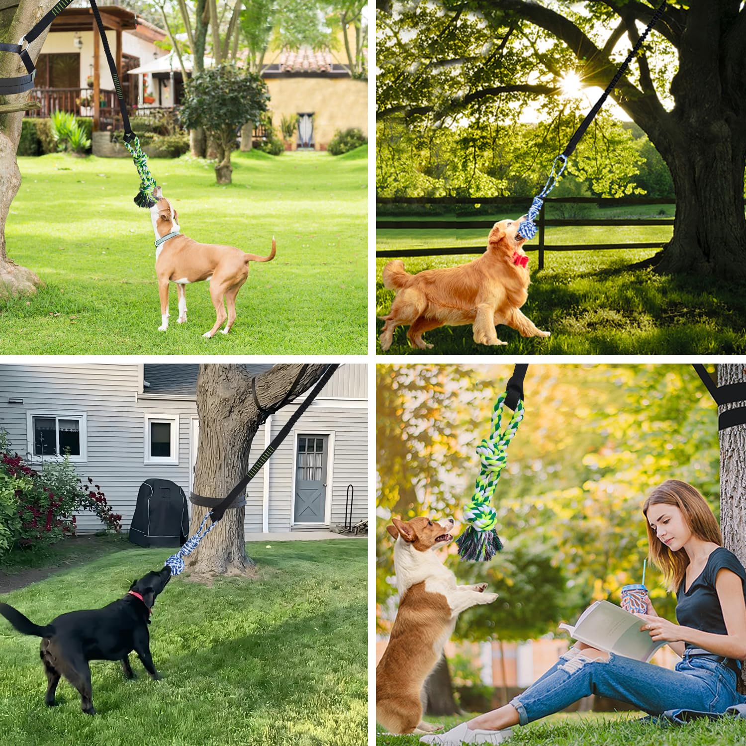 TUAHOO Outdoor Hanging Dog Bungee Tug Solo Toy, Tree Tugger Pull Rope & Tether Tug a War for Pitbull Medium Large Aggressive Chewers, Interactive Exercise Play Cord, 2 Dog Rope Toys