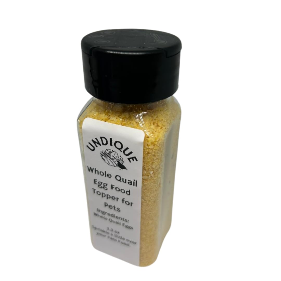 - Wholesome Pet Food Toppers: Our wholesome pet food toppers, made from versatile quail egg products, offer a sustainable pet food topper solution. Enhance your dog's diet with essential vitamins, promoting a shiny coat and healthy skin. Nutrient-Rich: Packed with essential B12, riboflavin, and selenium vitamins, Quailicious Boost helps maintain your dogs energy levels and immune function for overall well-being.