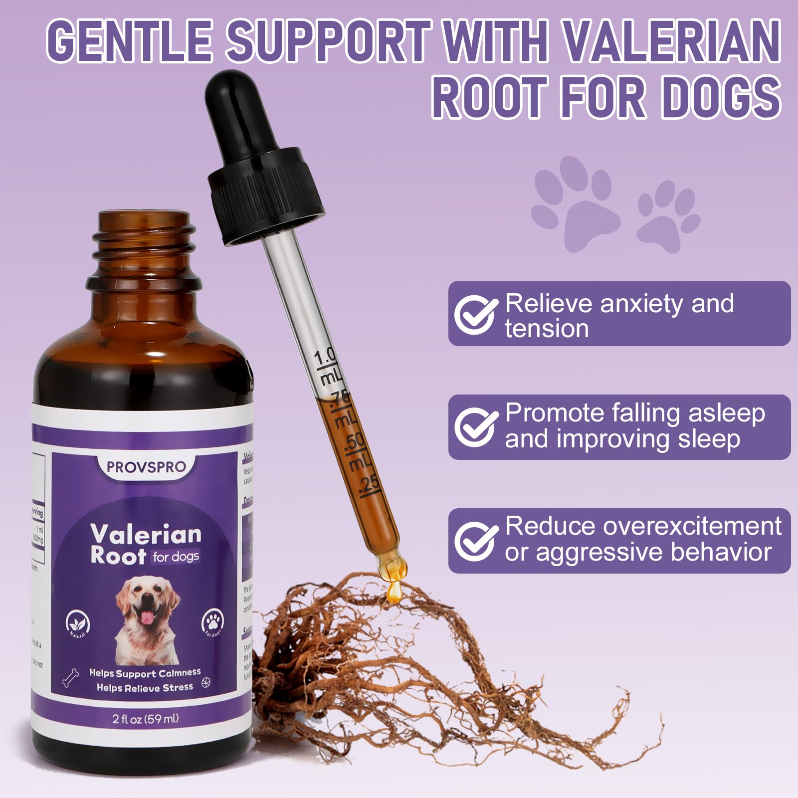 Vet Recommended - PROVSPRO valerian root drops is specially designed to soothe dogs, effectively relieve anxiety and stress, and help dogs relax. It can also improve sleep difficulties caused by tension, help dogs fall asleep faster, and improve sleep quality. Valerian root for dogs also helps reduce overexcitement, frequent barking or aggressive behavior caused by stress, making your furry friend happy and worry-free.