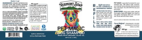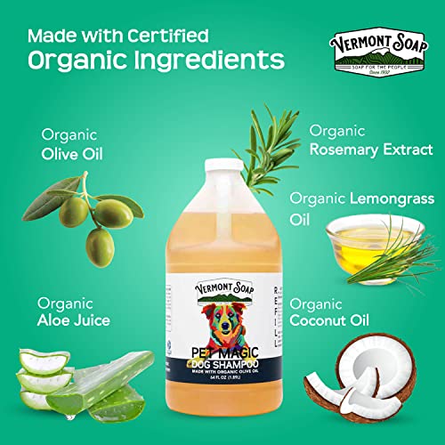 VERMONT SOAP Organics Pet Shampoo - Infused with Organic & Natural Olive Oil, Coconut & Aloe Vera Dog Shampoo for Sensitive Skin - USDA Certified Grooming Pet Shampoo - Original Citrus (64oz)