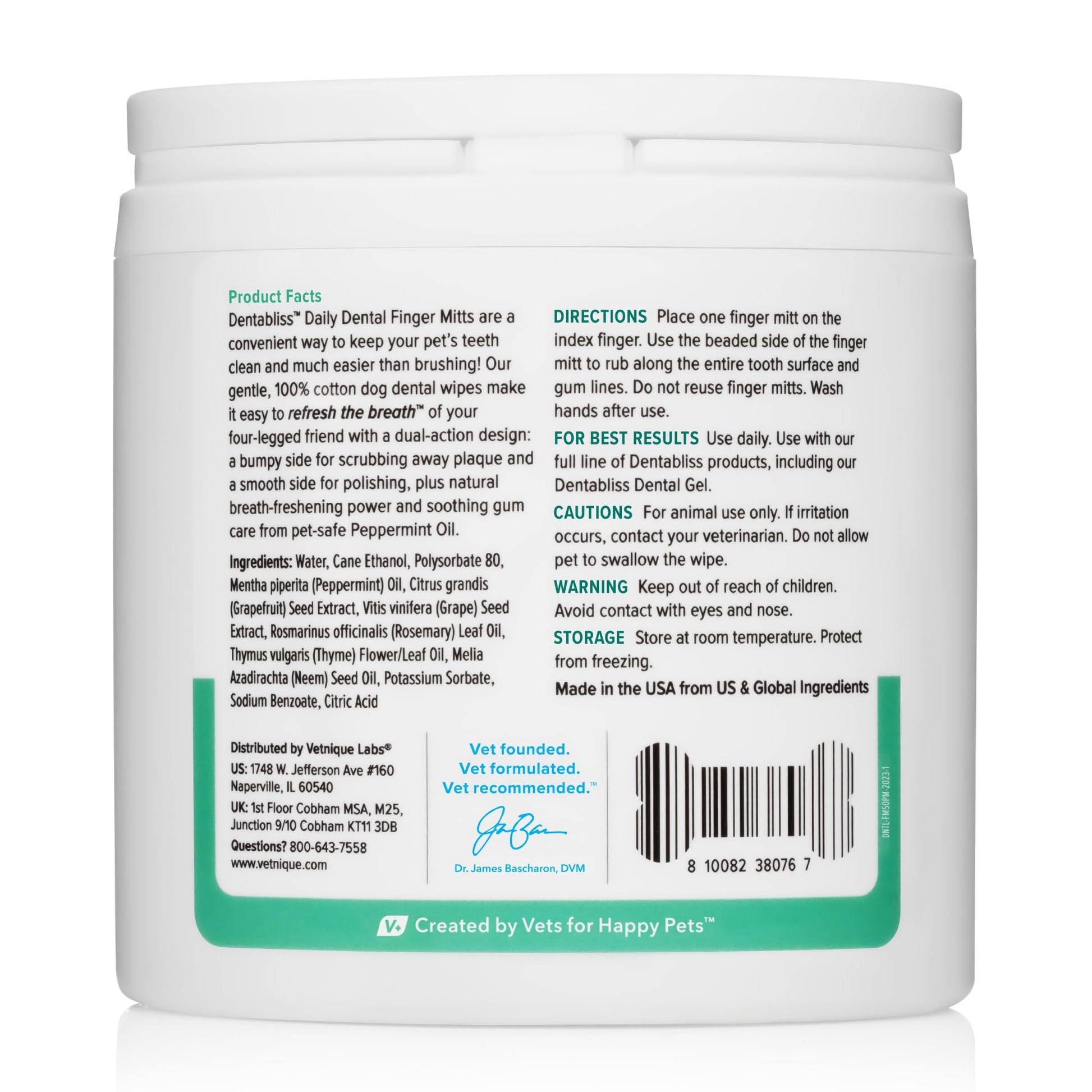 Vetnique Dentabliss - Dog Teeth Cleaning Finger Mitt Dental Wipe - Dog Plaque & Tartar Prevention with Brushing Beads - Flavored Dog Teeth Wipes, Dog Breath Freshener (Peppermint)