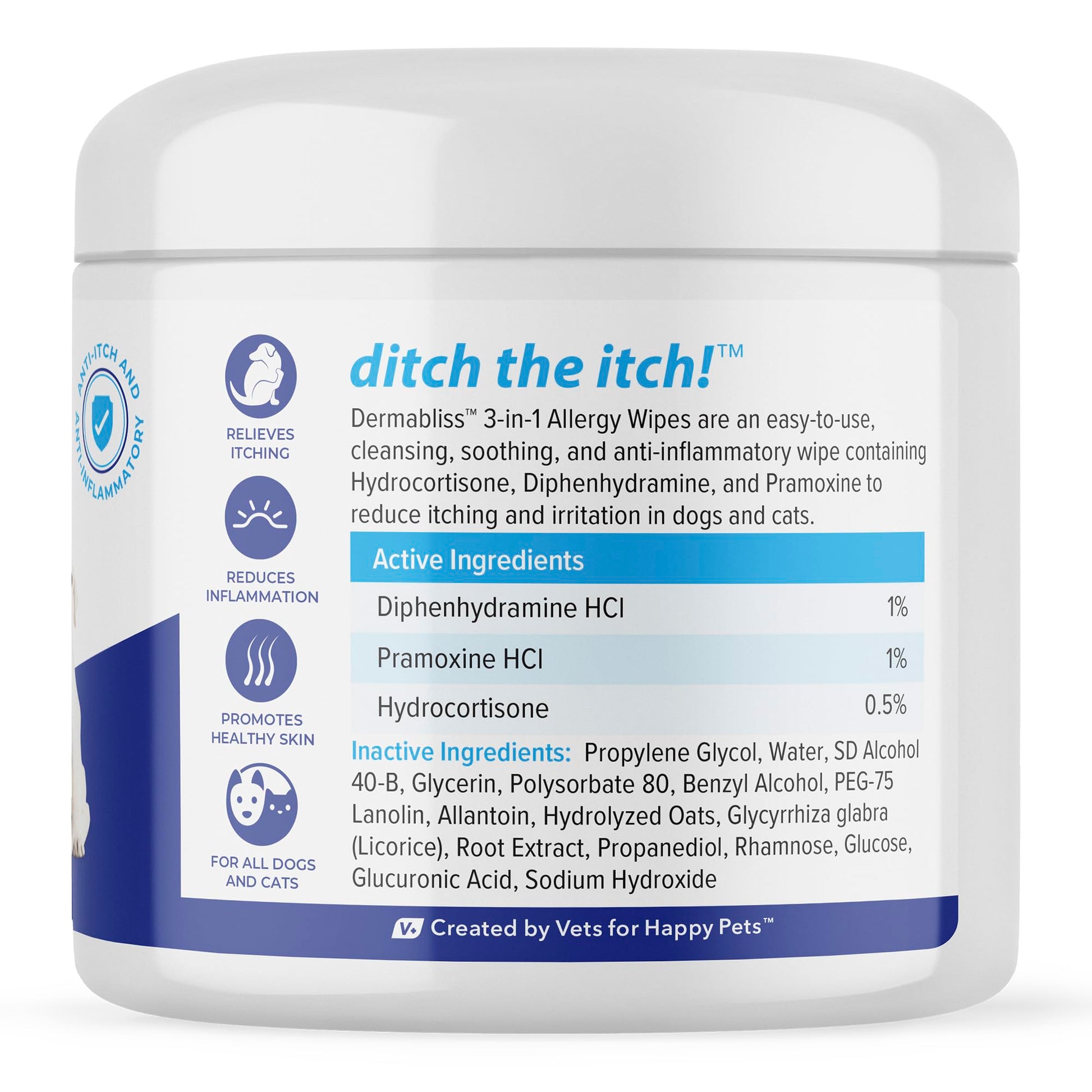 Vetnique Dermabliss 3-in-1 Medicated Dog Wipes - Relief for Itchy Skin, Allergies & Odor Control, Gentle No-Sting Formula, Antihistamine & Hydrocortisone Paw Wipes for Dogs & Cats 50 Count