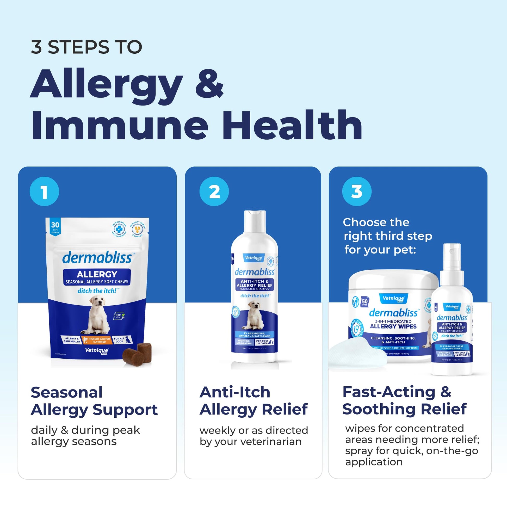 • CREATED BY VETS FOR HAPPY PETS: Dermabliss ditch the itch skin and allergy care–and all Vetnique products–are created with the health and well-being of pets and pet parents in mind. Be sure to check our store page for more great pet products.