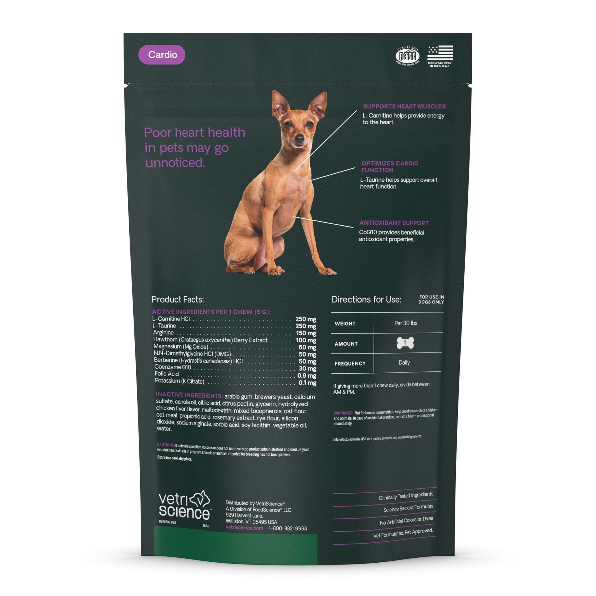 VetriScience Extra Strength Healthy Heart Chews, Vetri Cardio Supplement for Dogs, Heart Support Supplement with Taurine, Carnitine, CoQ10, Hawthorn and Berberine, Chicken, 60 Count