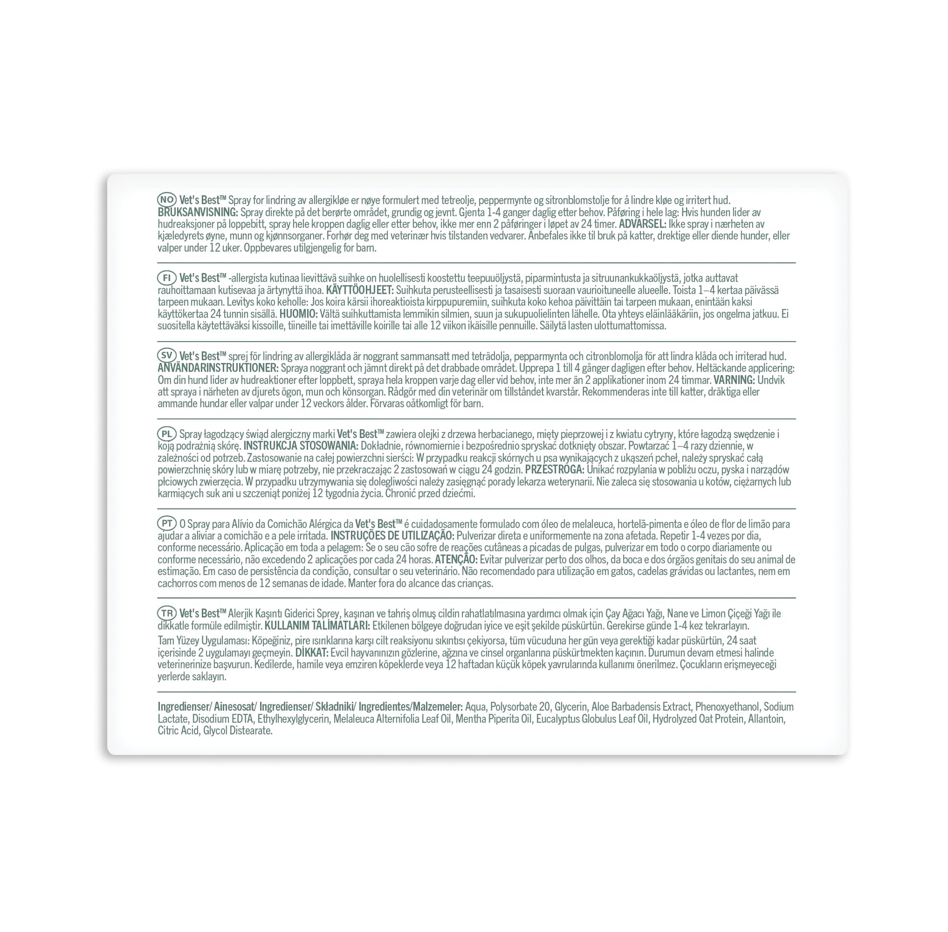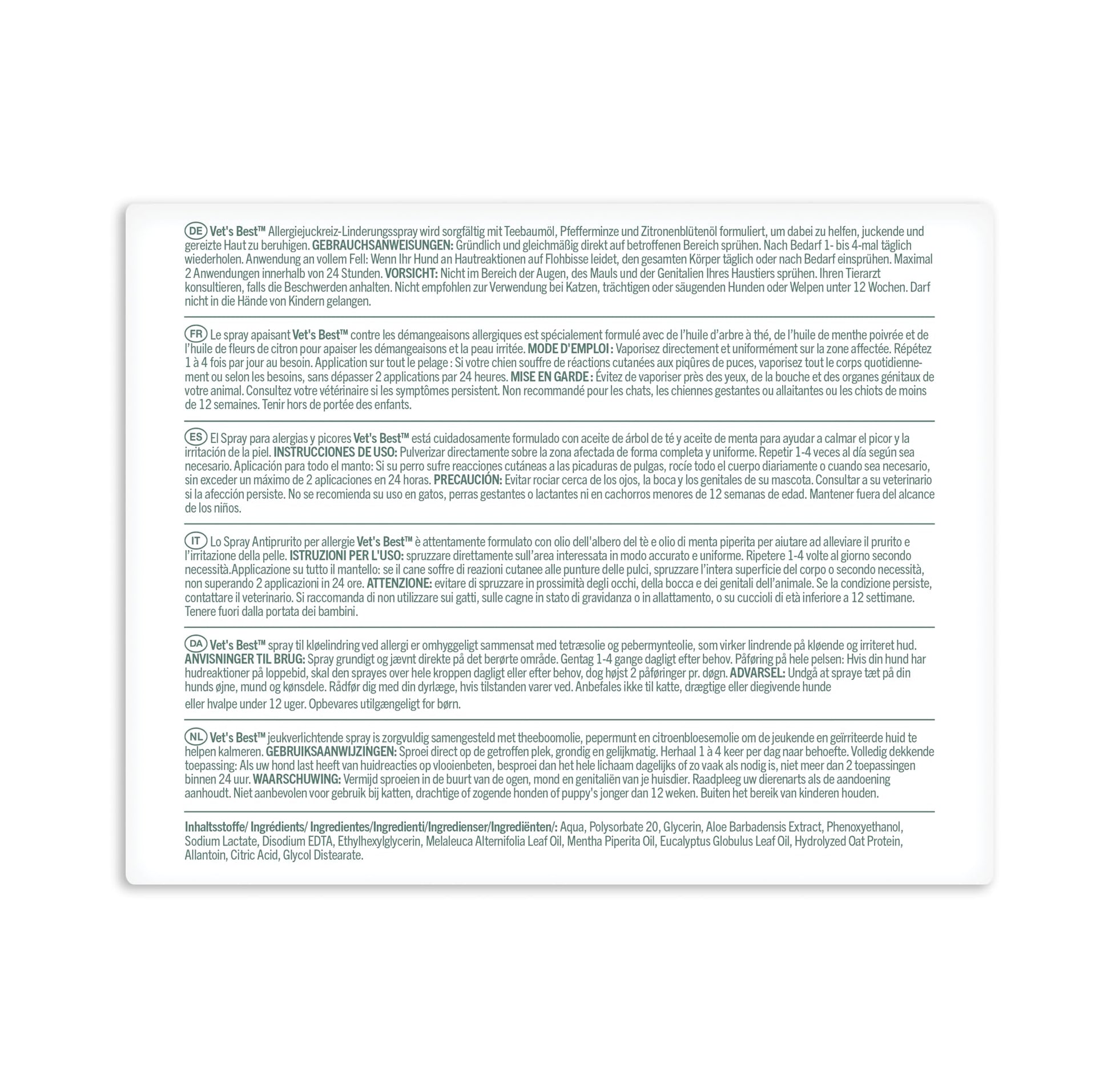 TOTAL CARE - Vet’s Best Allergy Itch Relief Spray for Dogs is part of our complete allergy itch relief skin care system. Use with Vet's Best Allergy Itch Relief Shampoo.