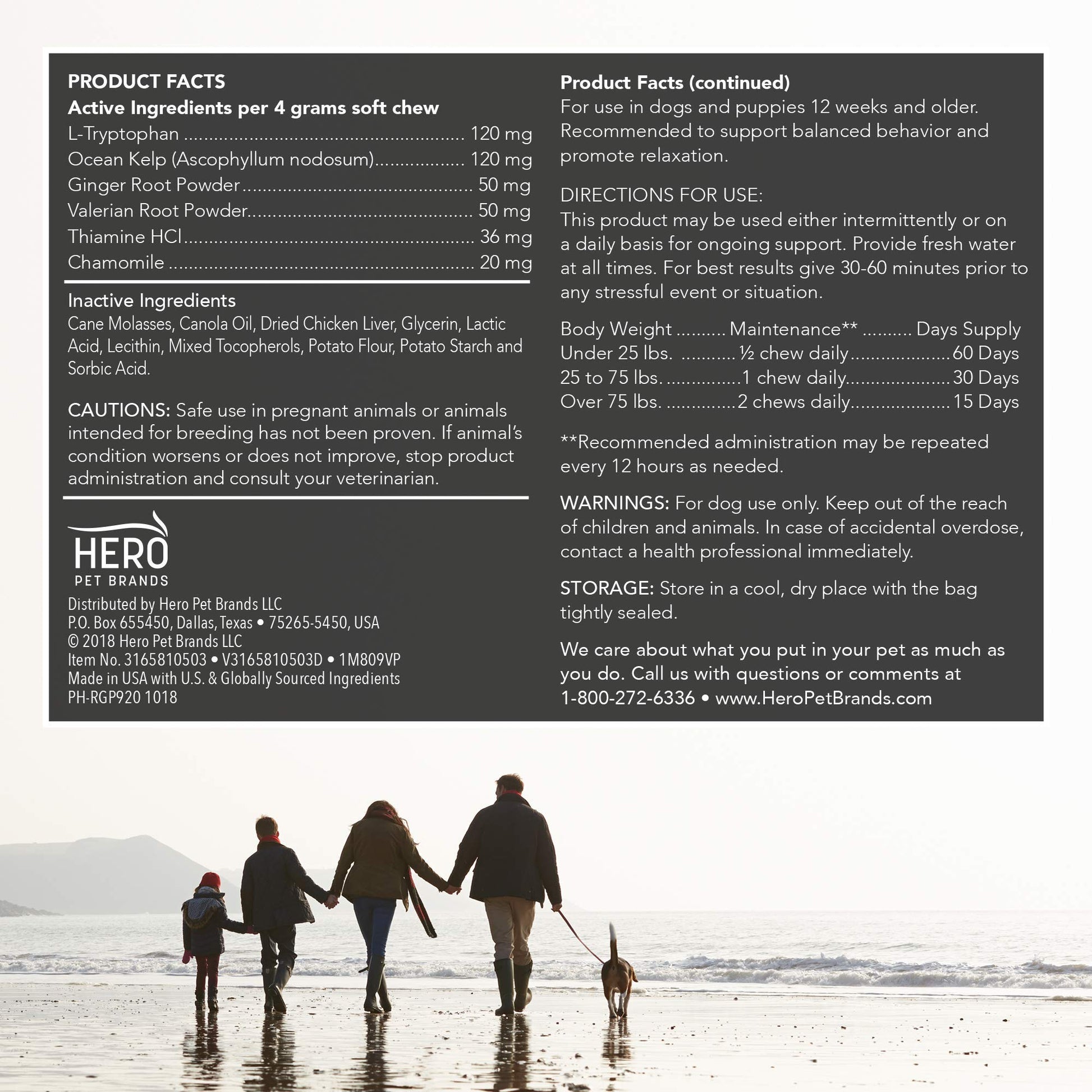 VETERINARIAN-FORMULATED - Each soft chew contains a soothing blend of tryptophan and natural thiamine, valerian root, chamomile, and ginger root for non-drowsy relaxation, balanced behavior and motion sickness prevention.