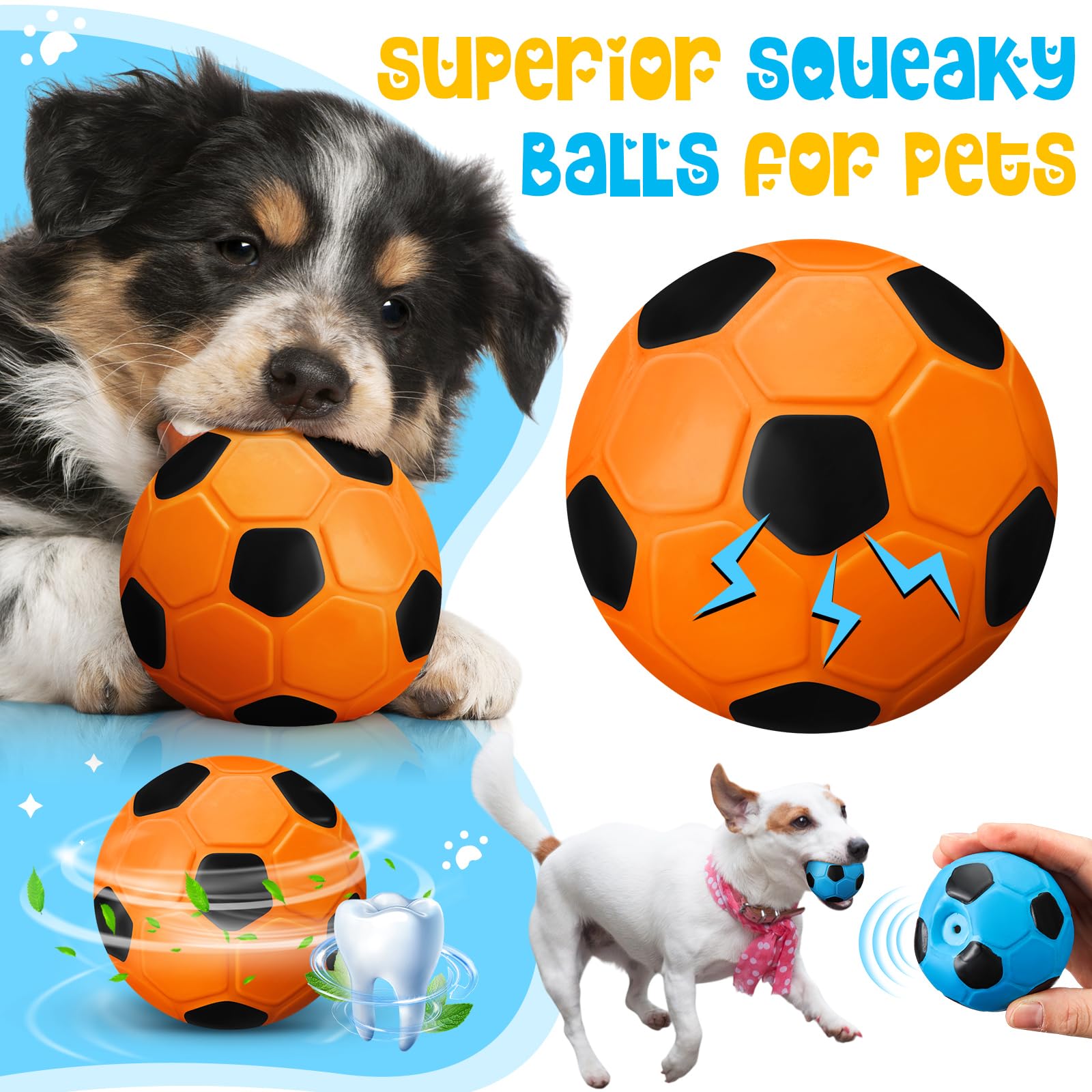 Package List: you will receive 6 dog squeak balls, designed with 6 different colors, bright patterns and interesting squeaks can easily attract your pet's attention, reduce your pet's separation anxiety, and can enhance your relationship