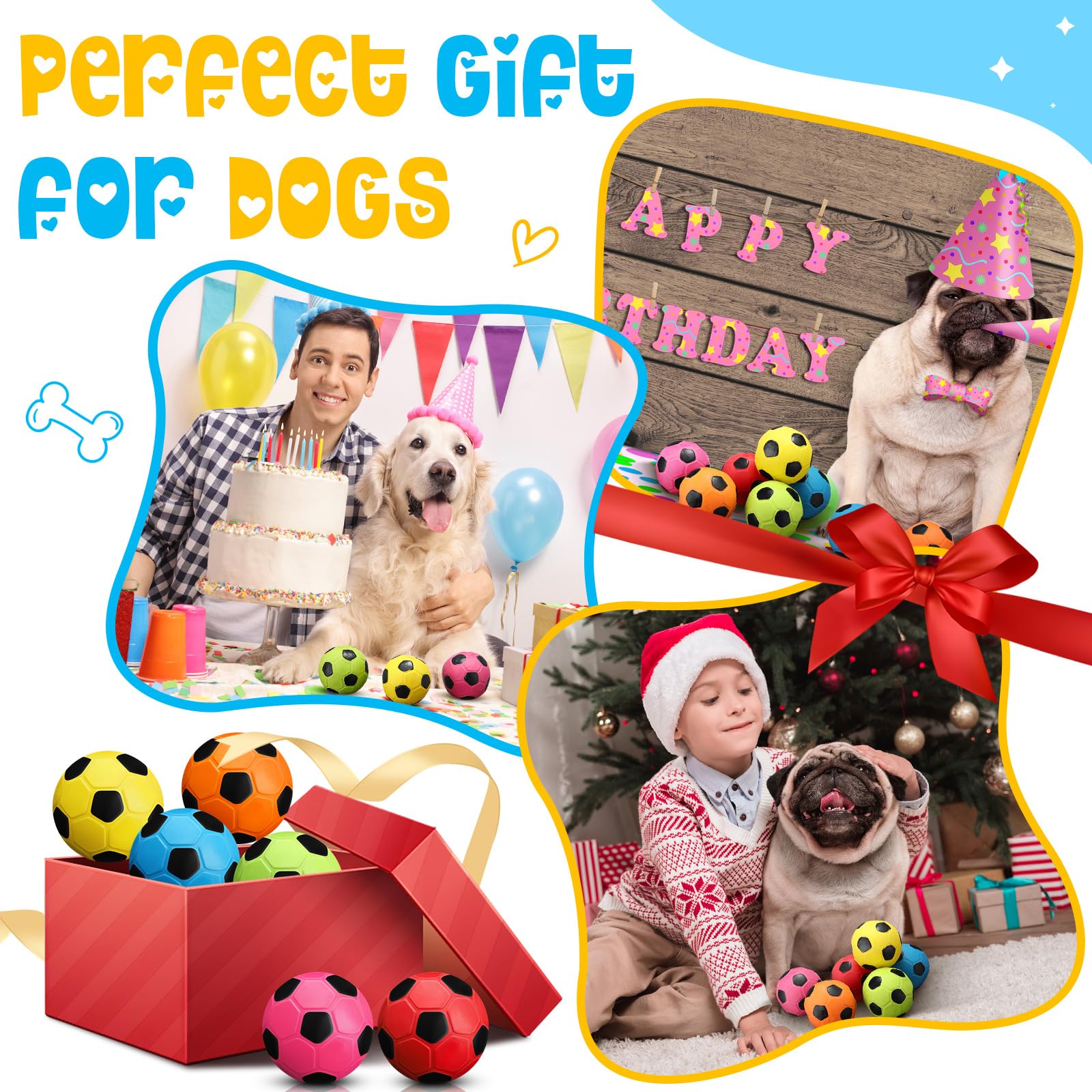 Vinsot 6 Pack 2.6'' Squeak Latex Dog Toy Ball Soft Durable Chew Puppy Soccer Toy Rubber Fetch Interactive Dog Ball for Small Medium Pets Training Supply