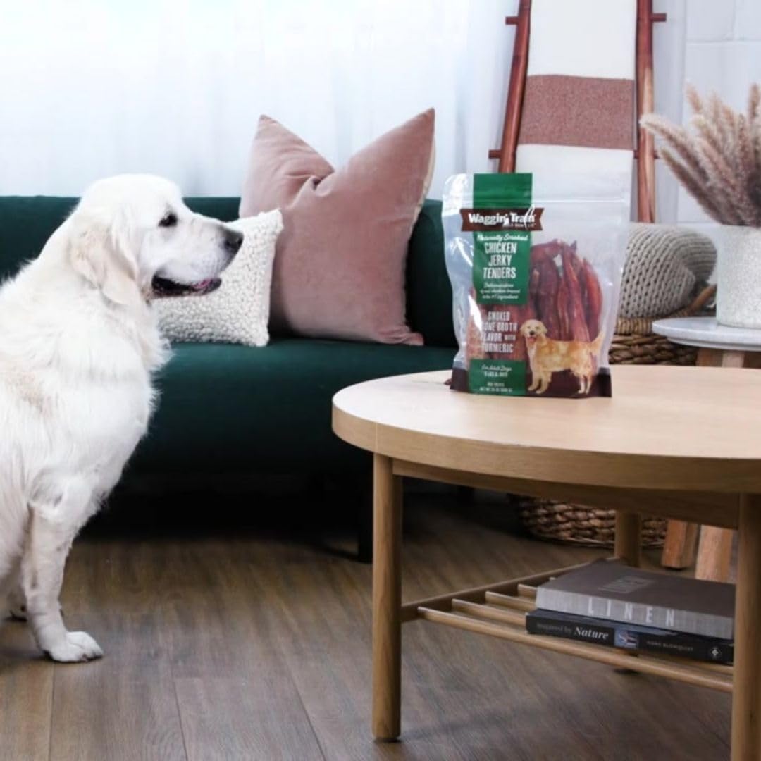 Details: Tails don’t lie – open a bag of Waggin' Train Naturally Smoked Chicken Jerky Tenders with Bone Broth & Turmeric and your dog won’t be able to resist! We’ve elevated the same formula of our beloved original tenders by smoking the chicken, plus added bone broth and turmeric to provide an irresistible mouth-watering taste, smell, and texture that will have your dog begging for more. Our delicious chicken jerky is made from real, high-quality whole muscle chicken breast and is full of great taste. We’ve added human-grade chicken bone broth which is packed with naturally occurring collagen, vitamins, and minerals that are essential for your dog’s overall health & wellness. The added turmeric will tempt your dog’s nose and taste buds – something even the pickiest eaters will love! These flavorful, dehydrated chicken tenderloins are carefully smoked and crafted from simple ingredients – with 100% real chicken as the #1 ingredient – because health and happiness shouldn’t be complicated. Our indulgently chewy chicken jerky treats have a mouth-watering taste and texture and are a high-protein, healthy, convenient treat dogs love getting and you love giving.