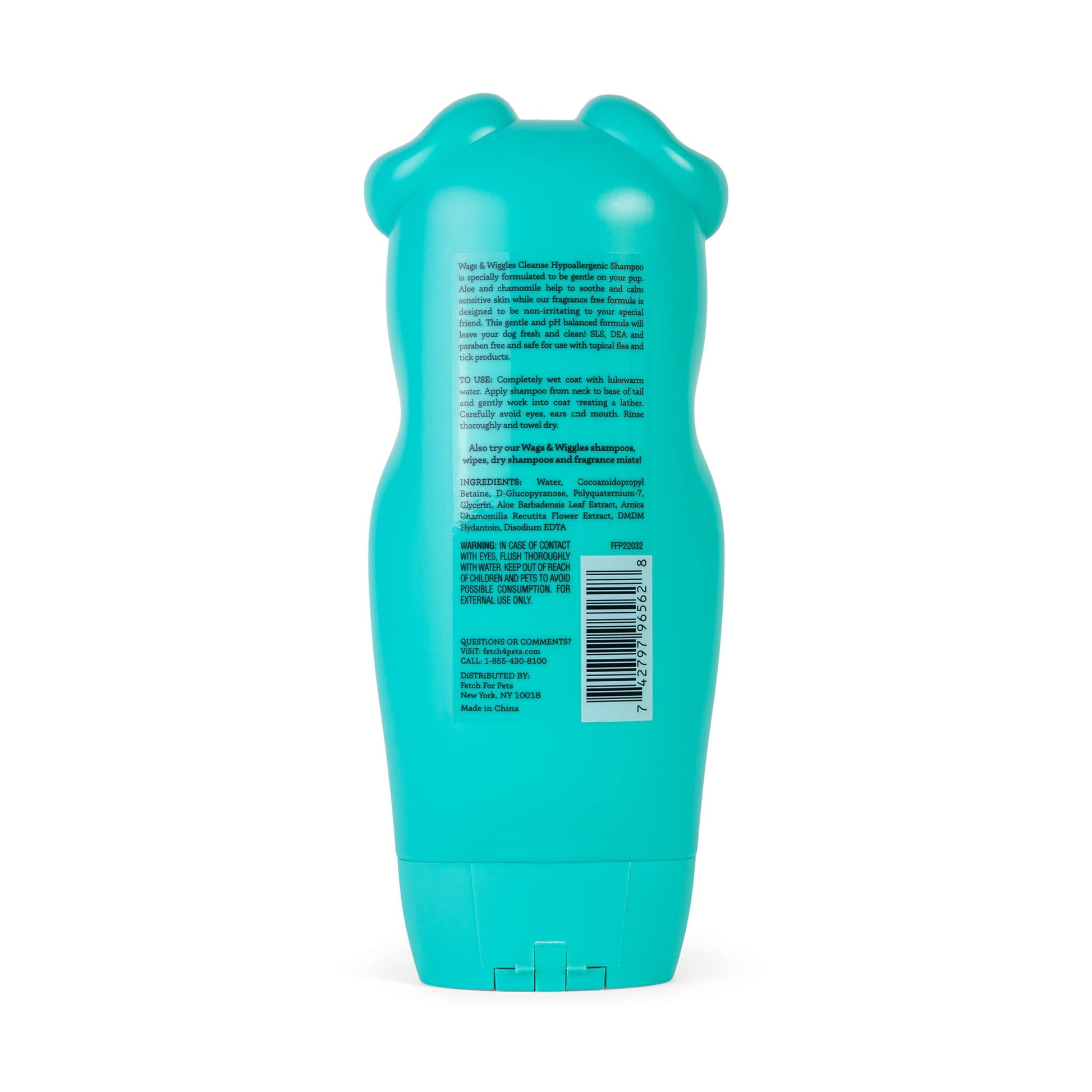 Details: Wags & Wiggles Cleanse Hypoallergenic Shampoo is specially formulated to be gentle on your pup. Made with high quality ingredients, this dog shampoo uses the natural benefits of aloe and chamomile to help soothe and calm sensitive skin. This hypoallergenic dog wash is fragrance-free, designed to be non-irritating to your special friend. Our high-quality grooming products make caring for your precious pup effortless and enjoyable! It will leave your furry friend smelling clean and feeling fresh without added chemicals or fragrances that will irritate sensitive skin. This gentle and pH balanced formula will leave your dog fresh and clean! This product is free from SLS, DEA, and parabens. It is also safe for use with topical products and won’t wash them away. Also try our Wags & Wiggles shampoos, wipes, dry shampoos, and fragrance mists! Bring out the best in your best friend with the Wags & Wiggles essential pet care solutions. Whether your furry buddy is posh and pampered or rough and rugged, we’ve got the pet care products to suit their lifestyle. Our Wags & Wiggles grooming products are pH balanced for dogs and will leave your dog smelling fresh and ready to keep on wiggling! To use: Completely wet coat with lukewarm water. Apply shampoo from neck to base of tail and gently work into coat creating a lather. Carefully avoid eyes, ears and mouth. Rinse thoroughly and towel dry. In case of contact with eyes, flush thoroughly with water. For external use only. Keep out of reach of children and pets to avoid possible consumption.