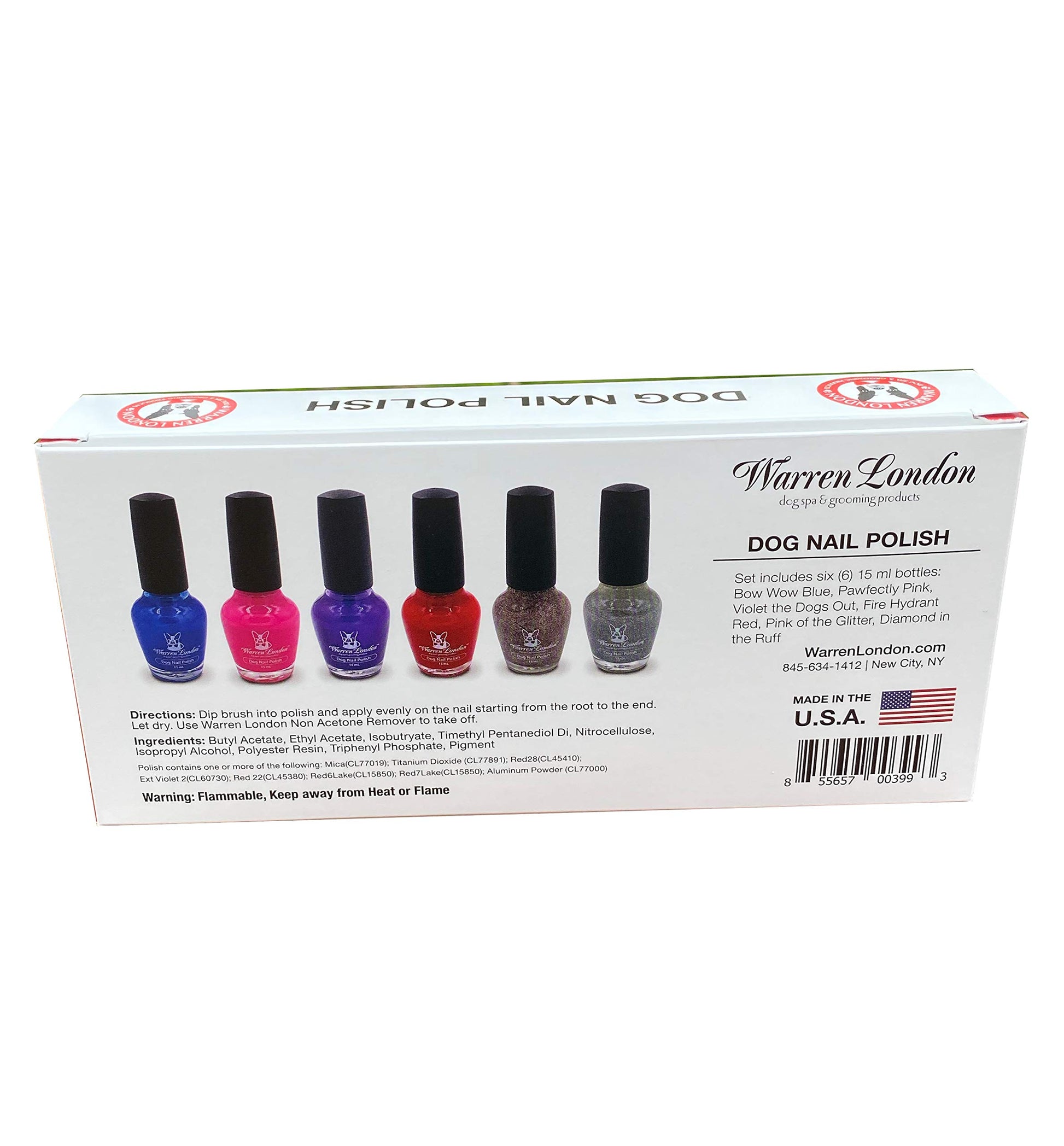 - Quick Dry & Easy Application - Shake well before using. Unscrew cap, and coat brush tip with polish before applying paint on dog's nail. Easy To Remove with Warren London Dog Nail Polish Remover or any non-acetone polish remover.