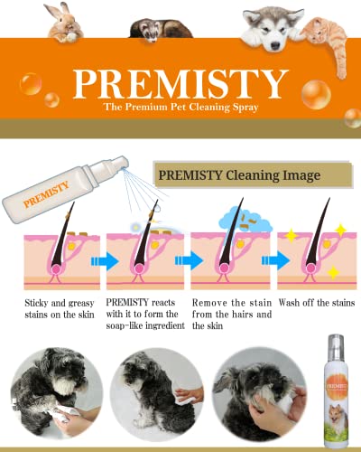• CLEAN & REFRESHED - Give your pet a quick refresh anytime, anywhere! PREMISTY waterless dog dry shampoo removes odor, drool, and grime from even the messiest pups and fussiest cats. Just spray, wipe, and go!