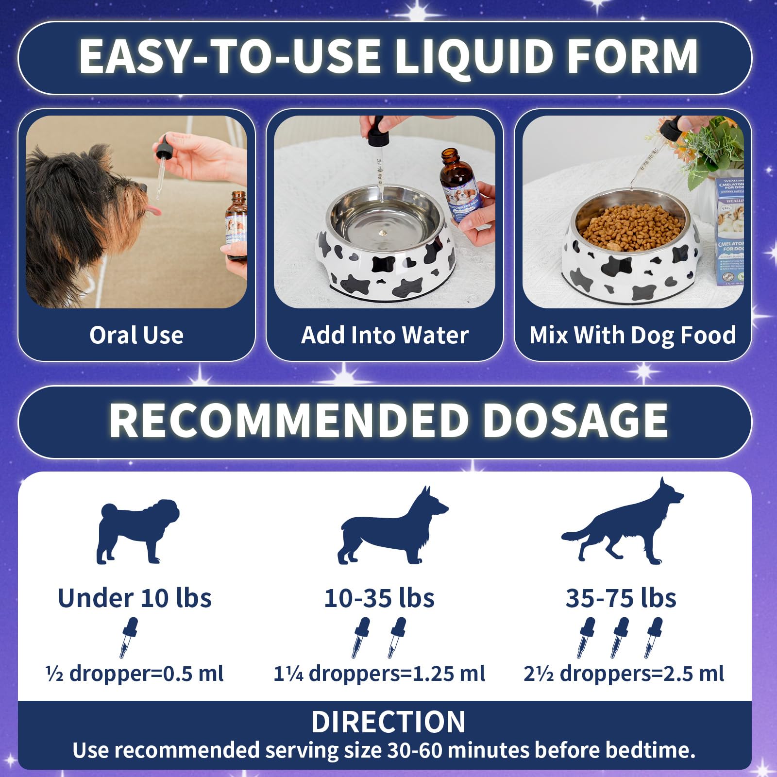 • Daily Wellness Meets Nighttime Calm: Pairing WEALLIN’s multivitamin chews with melatonin drops offers all-day support—boosting your dog’s vitality while helping them wind down peacefully at night.