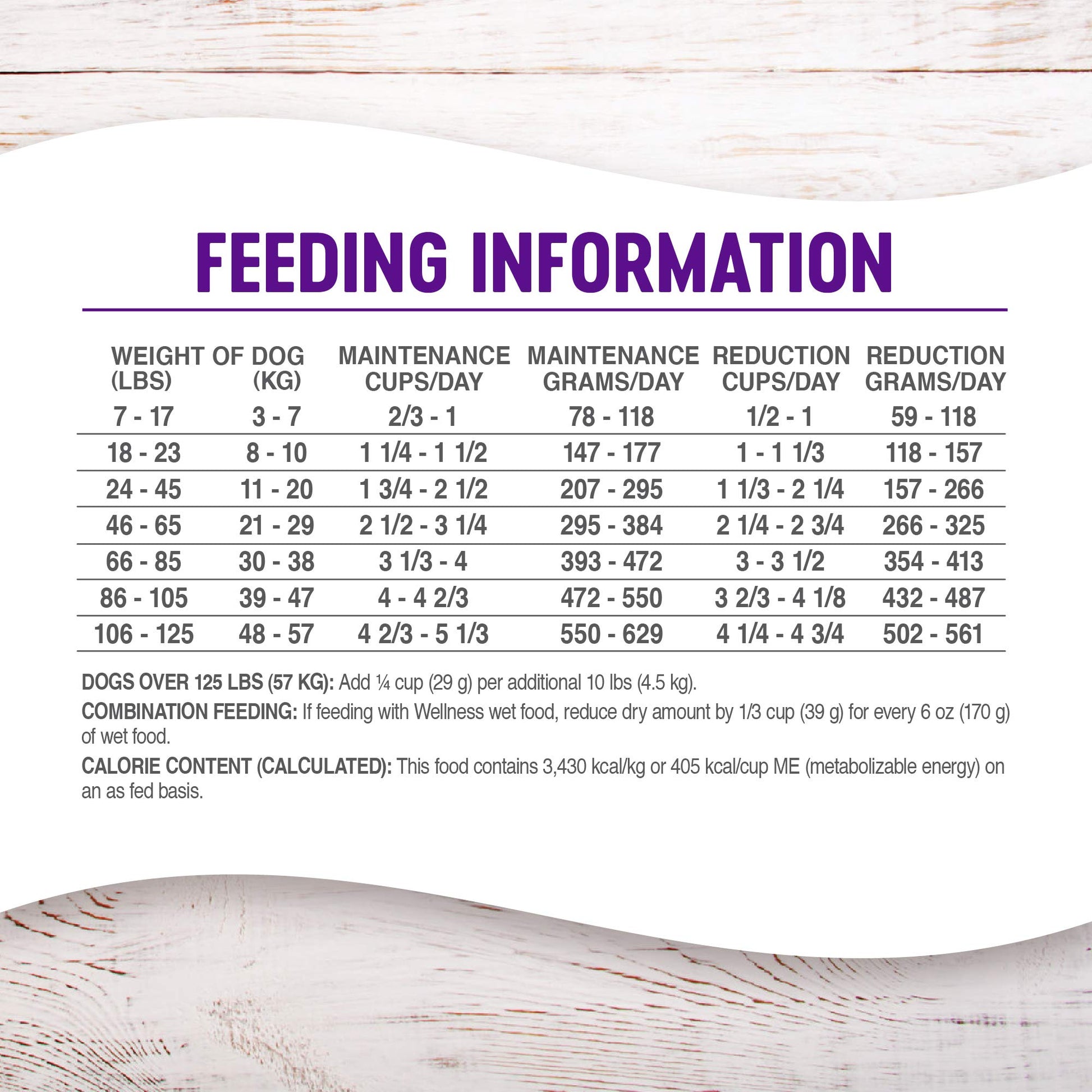 Wellness Complete Health natural pet food is made with carefully chosen, authentic ingredients for everyday health. An optimal balance of nutrient-rich whole foods to fulfill the unique health needs of your dog, providing whole-body nutritional support to promote complete health. Supported by omega fatty acids, antioxidants, glucosamine, probiotics and taurine for a healthy heart. Scientifically crafted by our team of veterinarians and scientists to provide nutrition for a lifetime of wellbeing. Easily add our food to your dog food storage container for a fresh scoop of dog food every time. Your small dog, large dog, senior dog, adult dog or puppy will love our tasty grained and grain free dog food options. We produce our high protein dog food in the USA with globally sourced ingredients. Whether you're looking for lamb dog food, chicken dog food, salmon dog food, or whitefish dog food, there is a recipe for you! Try our entire portfolio of high quality dog food today.