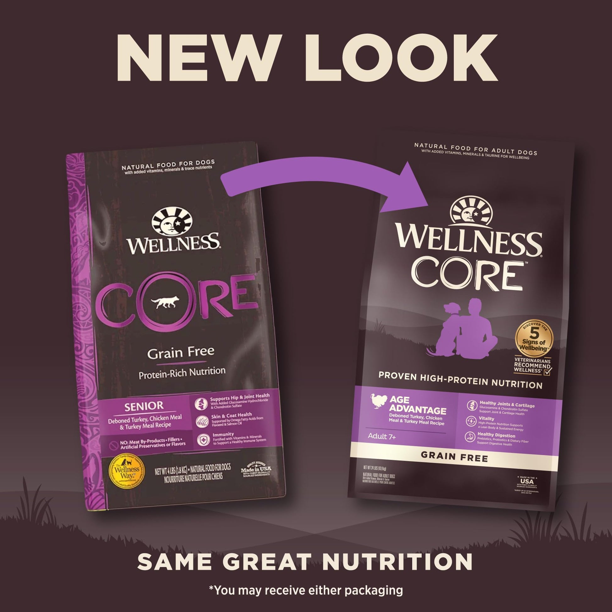 Wellness CORE Grain-Free Senior Dry Dog Food, Made in USA with Real Turkey and Natural Ingredients, With Nutrients for Immune, Joint, Skin & Coat Support, 24-Pound Bag