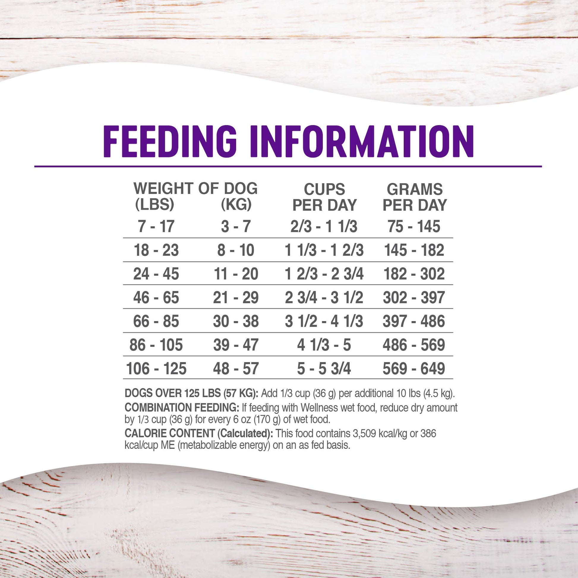Details: Wellness Complete Health Natural Dry Dog Food, Chicken Recipe, is a healthy, natural grain free dog food for adult dogs made with carefully chosen, authentic ingredients for everyday health and provide an optimal balance of nutrient-rich whole foods to fulfill the unique health needs of your dog, providing whole-body nutritional support to promote complete health. Wellness Complete Health Dry Dog Food supports your dog's balanced natural nutrition, healthy body mass, overall health and vitality, optimal nutrient absorption, bone and joint health and digestive health, all with natural and delicious ingredients to provide a guaranteed great taste that dogs love.