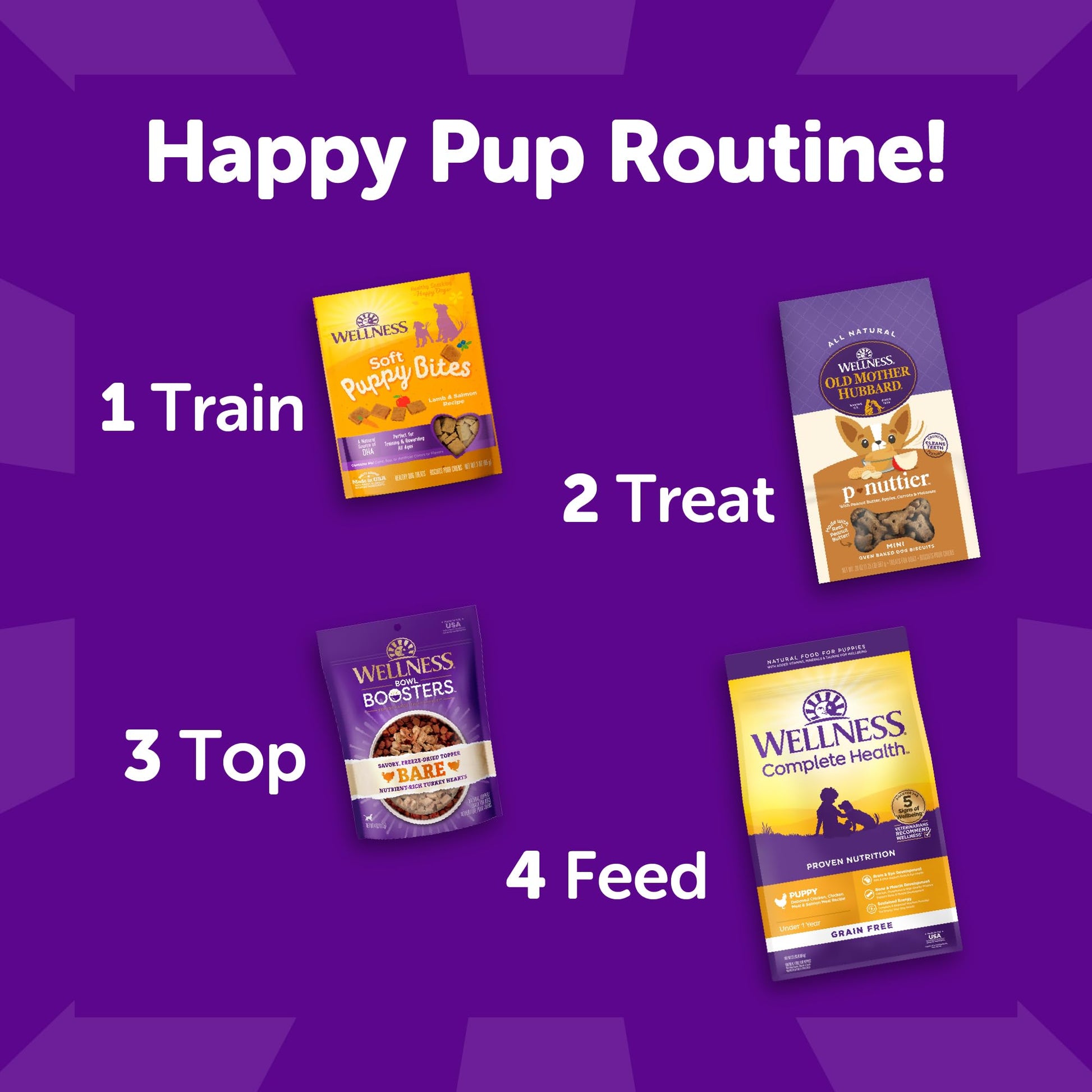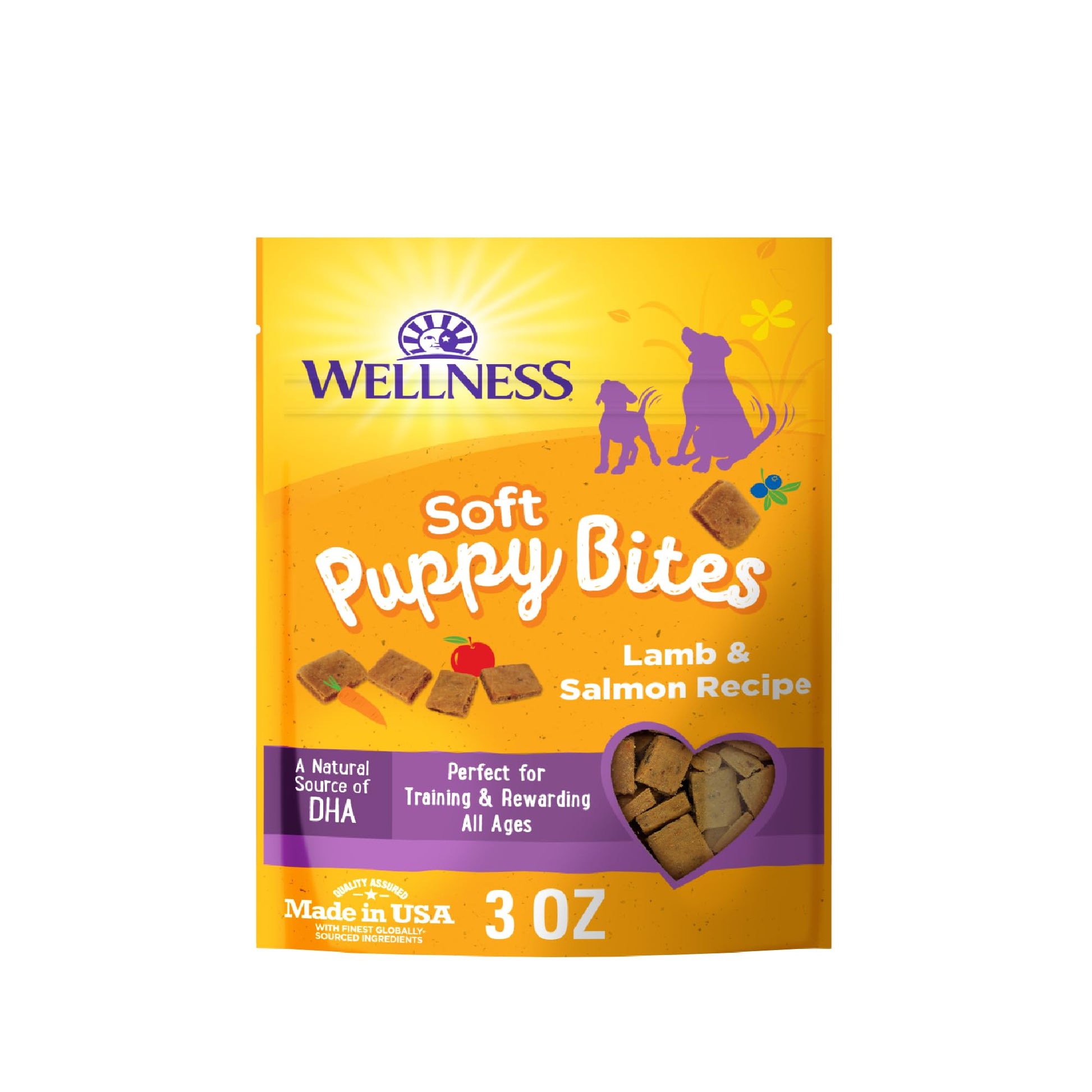 Details: Wellness healthy Grain Free Soft Puppy Bites Dog Treats are wholesome, healthy, soft, tasty, grain free bite-sized dog treats. Made in USA only and specially formulated for puppies under 1 year!