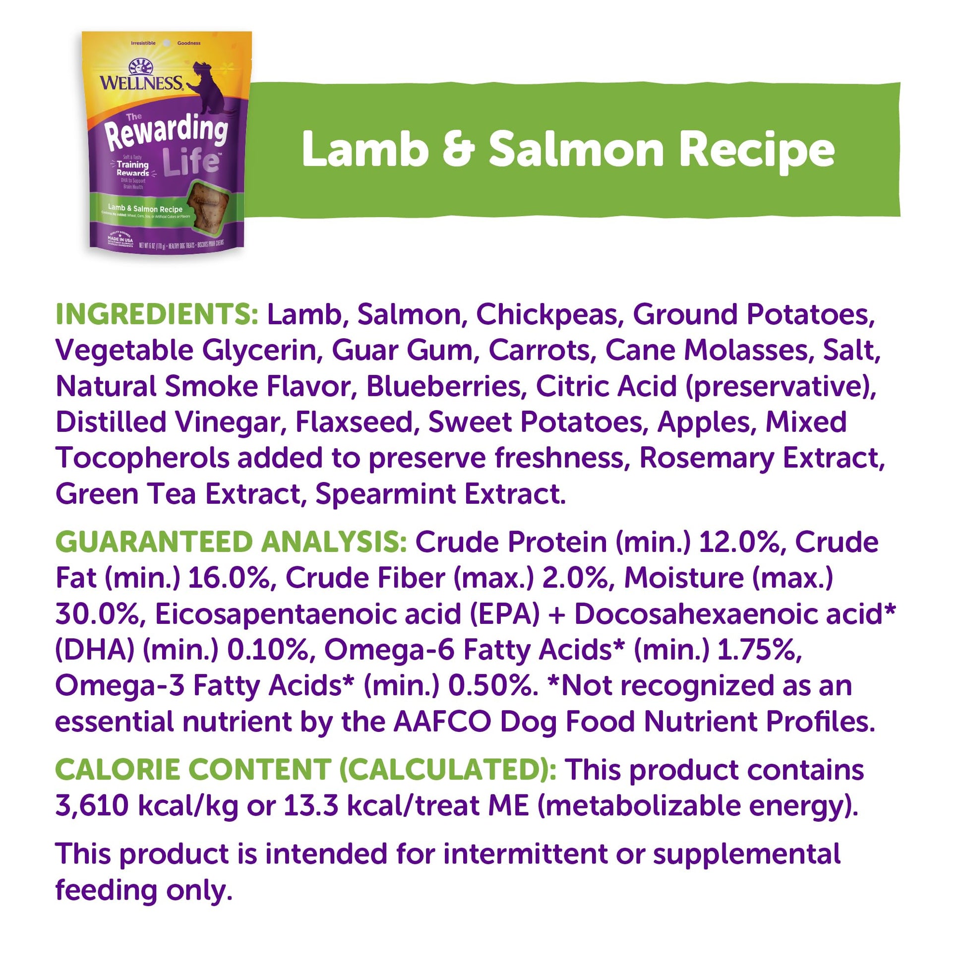 Wellness Rewarding Life Dog Treats, Training Treat, Grain Free, Soft Lamb & Salmon (6 Ounce Bag)