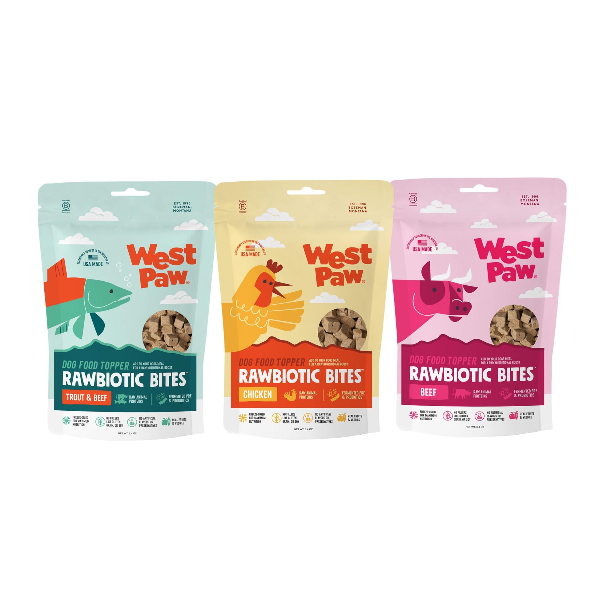 WEST PAW Rawbiotic Bites Chicken – Probiotic Dog Food Toppers for Dry Food, Meal Toppers for Dogs, Perfect for Picky Eaters – Grain-Free, Real Fruits & Veggies - Made in USA
