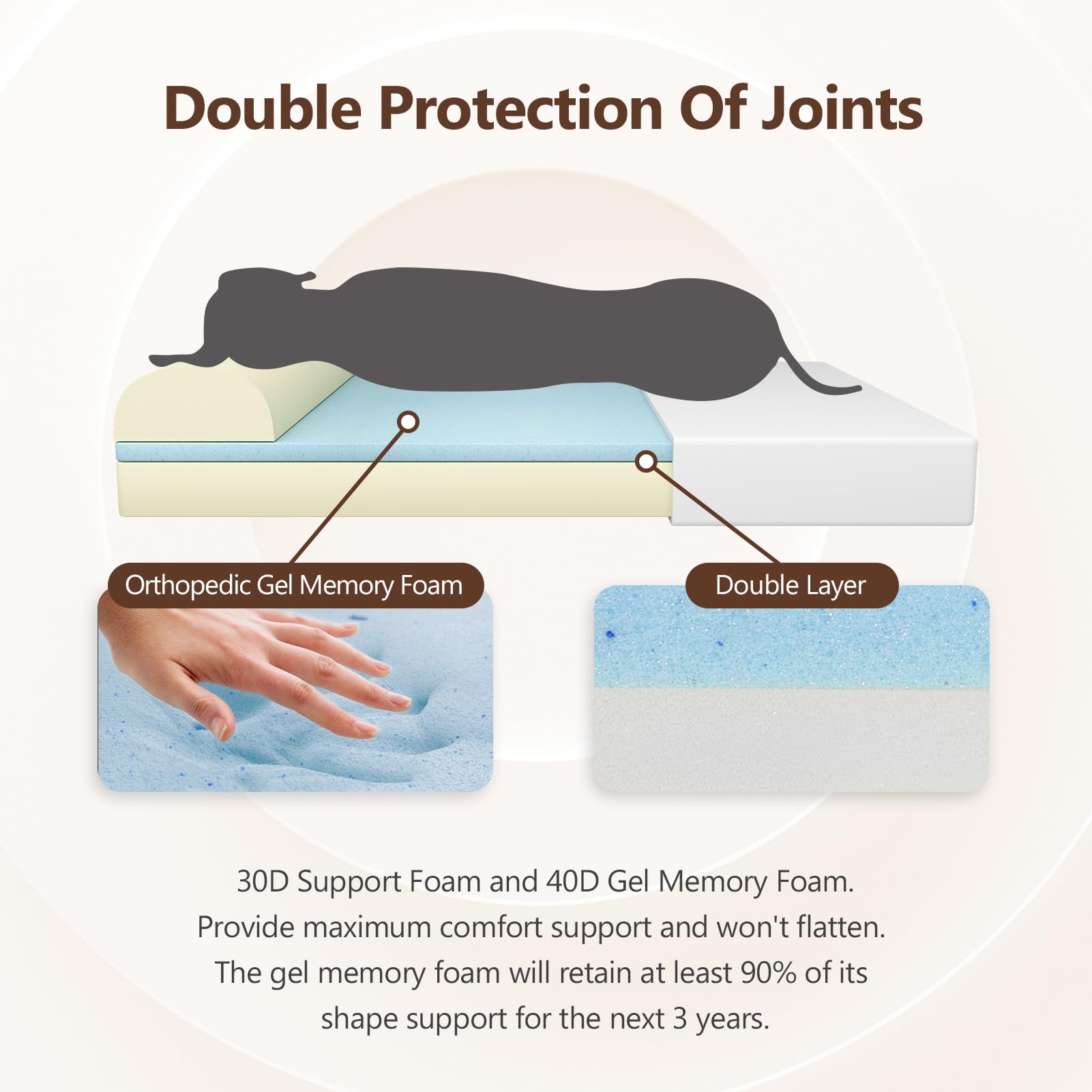 - 【Breathable Gel Memory Foam】: Cooling gel memory foam with high support foam allows for better airflow to balance sleep temperature, while providing durable support for relieving pressure points to protect pet’s joints and bones. The foam contains waterproof lining to prevent liquid penetration into the foam, maintaining clean environment. Our gel memory foam dog bed can keep its shape no matter how many times your pets sleep.