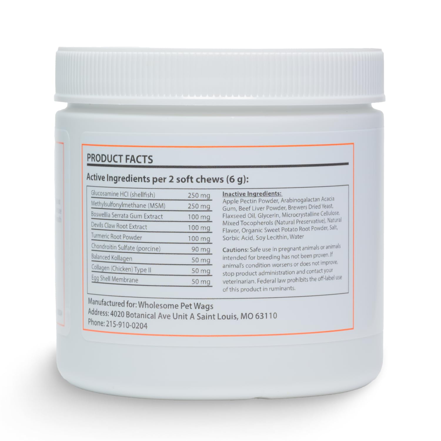 Wholesome Pet Wags Dog Hip & Joint Supplement Soft Chews – Advanced Mobility & Comfort Support – Glucosamine, Chondroitin, MSM, Turmeric, Boswellia, Collagen – 60 Count