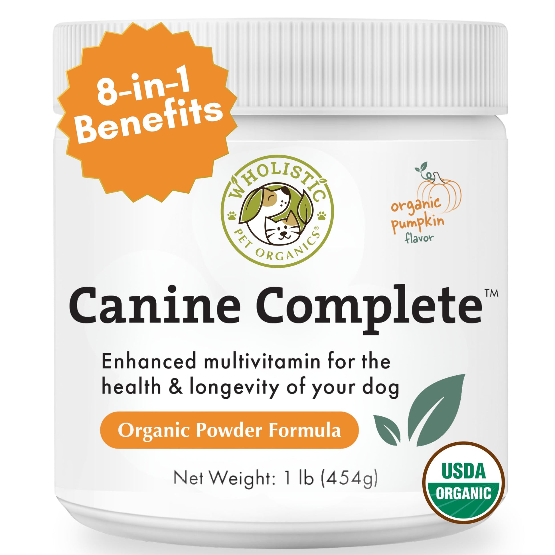 Advanced Dog Multivitamin with Pumpkin: Your pets health is our top priority, Canine Complete features a unique blend of organic vitamins for dogs, including probiotics and pumpkin for digestive health. Our easy to use additive fills the nutrition voids in modern pet foods.