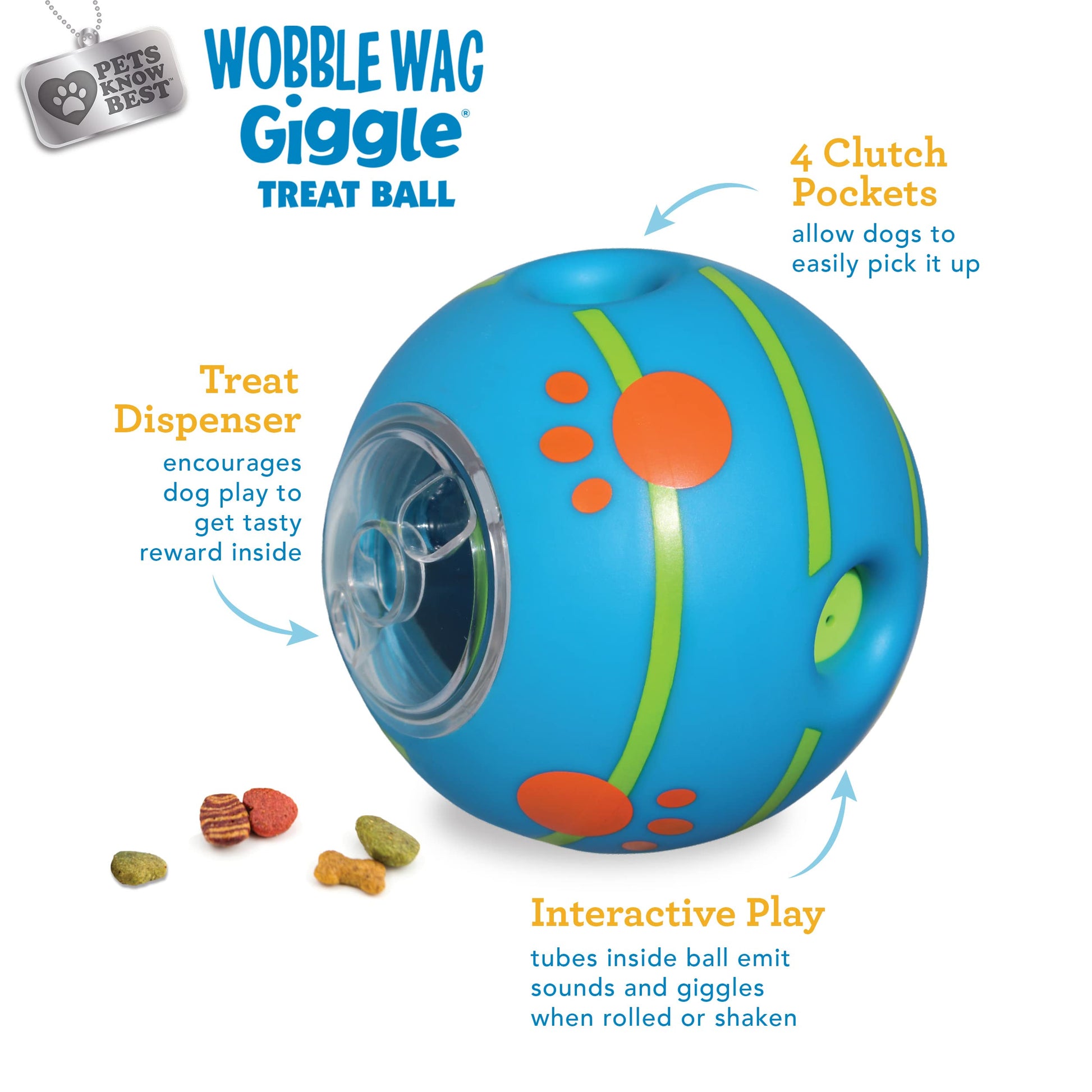 FURRY FRIEND TESTED Wobble Wag Giggle is sure to catch your dog’s attention with the fun sounds and become their favorite toy in no time! They will love fetching, rolling, & shaking this ball for the tasty reward inside. The Pets Know Best Collection—is truly furry friend tested and owner approved!