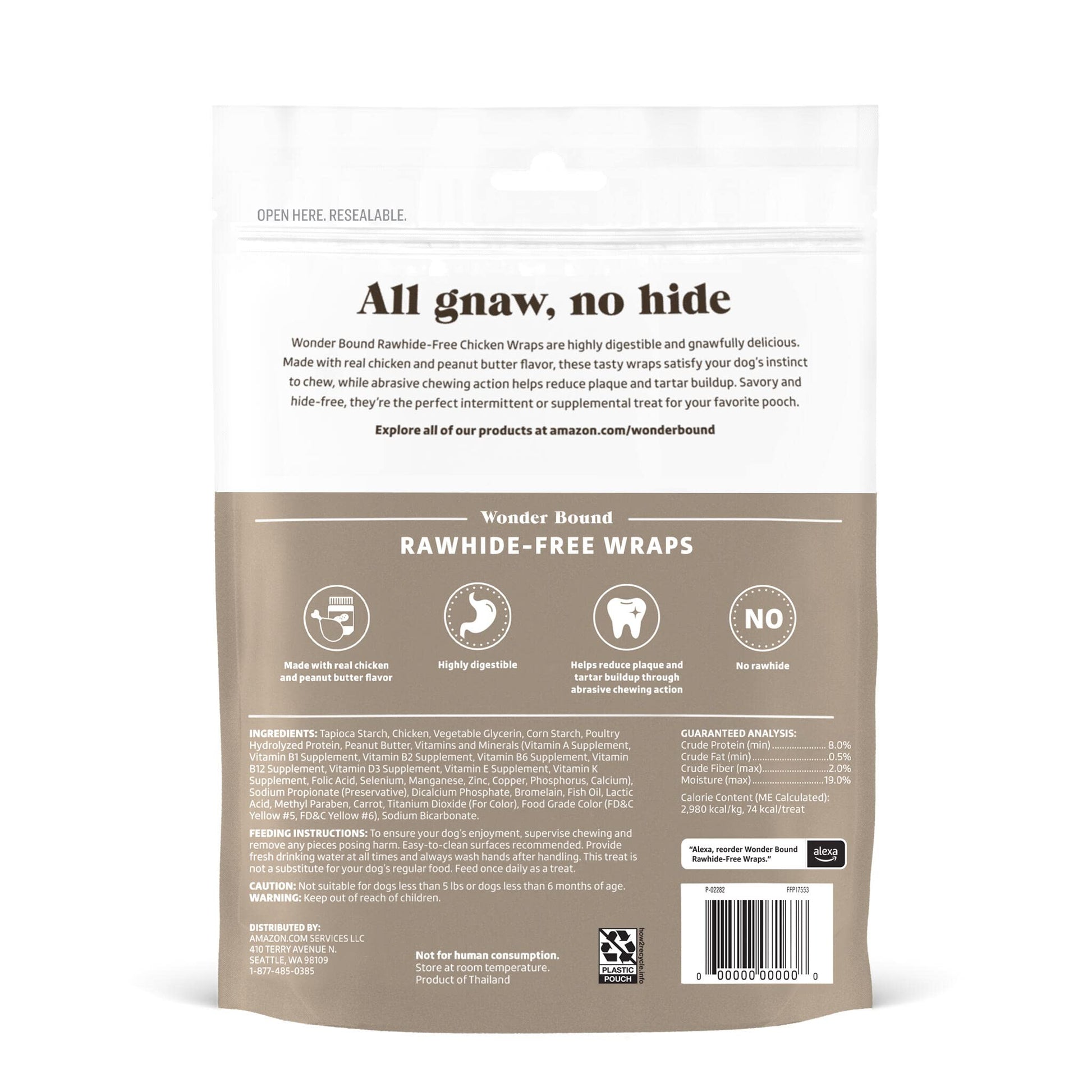 - Peanut Butter Infused Chicken Wraps - Savor the fusion of flavors with Wonder Bound's 8-count Peanut Butter Flavor Chicken Wrapped Sticks, where each treat is wrapped in real chicken and infused with a delightful peanut butter taste for a truly gourmet chew