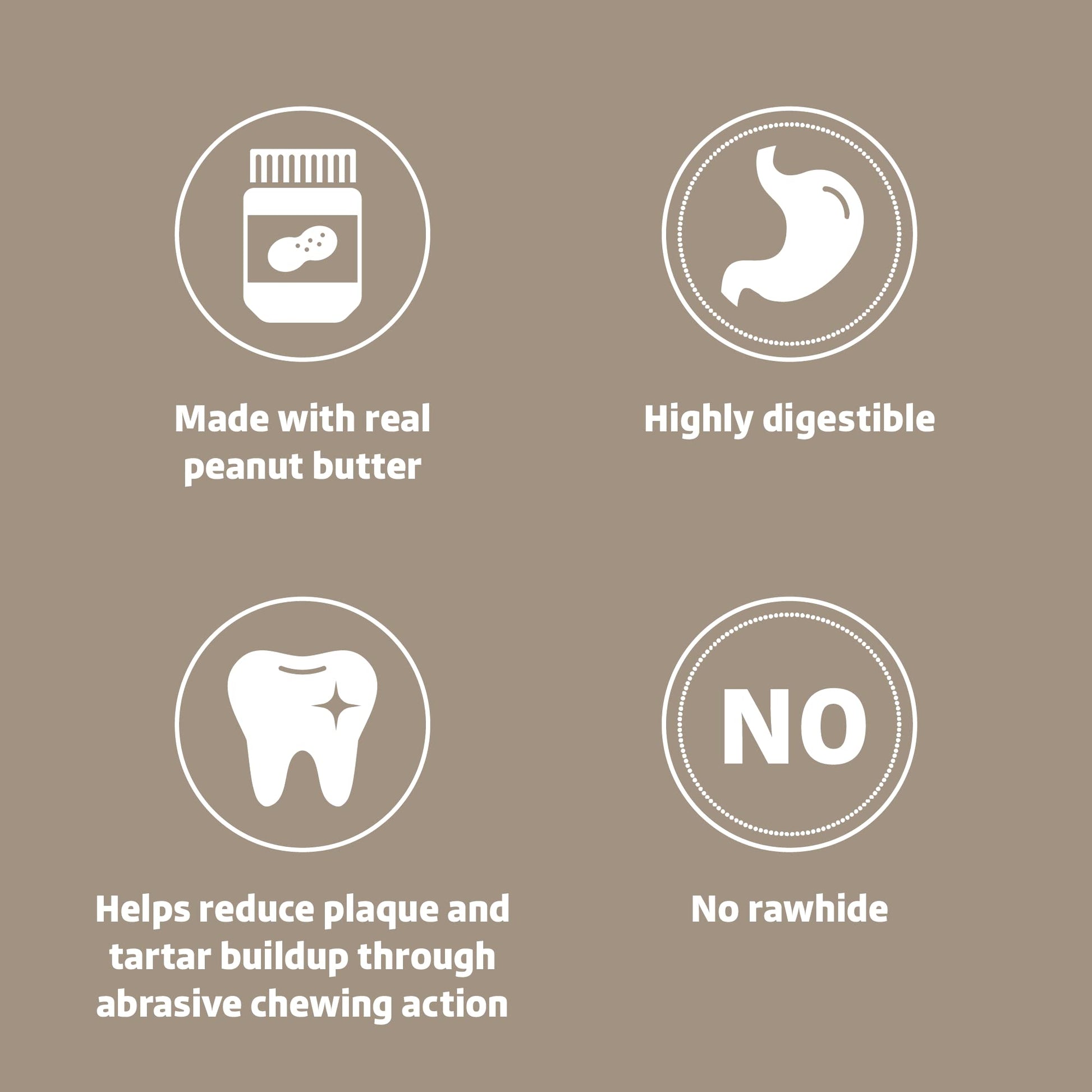- Promotes Dental Health - Keep your dog's smile bright with dental health support in every stick. The unique texture of our peanut butter treats helps to reduce plaque and tartar buildup, contributing to healthier teeth and gums through natural chewing action