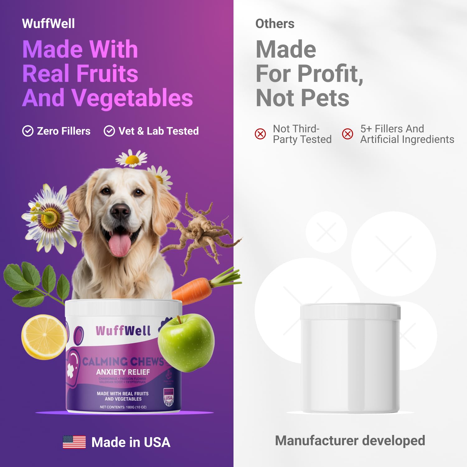 • HELPS KEEP YOUR PUP RELAXED – If your dog gets restless during storms or loud noises, this calming chew blend is crafted with chamomile, passion flower, valerian root, and tryptophan to support a sense of ease. Gentle and natural, it’s designed for everyday use to help maintain a calm demeanor in stressful situations.